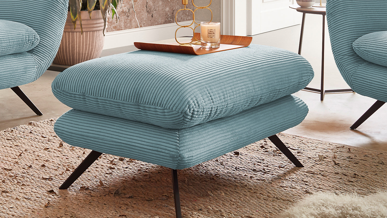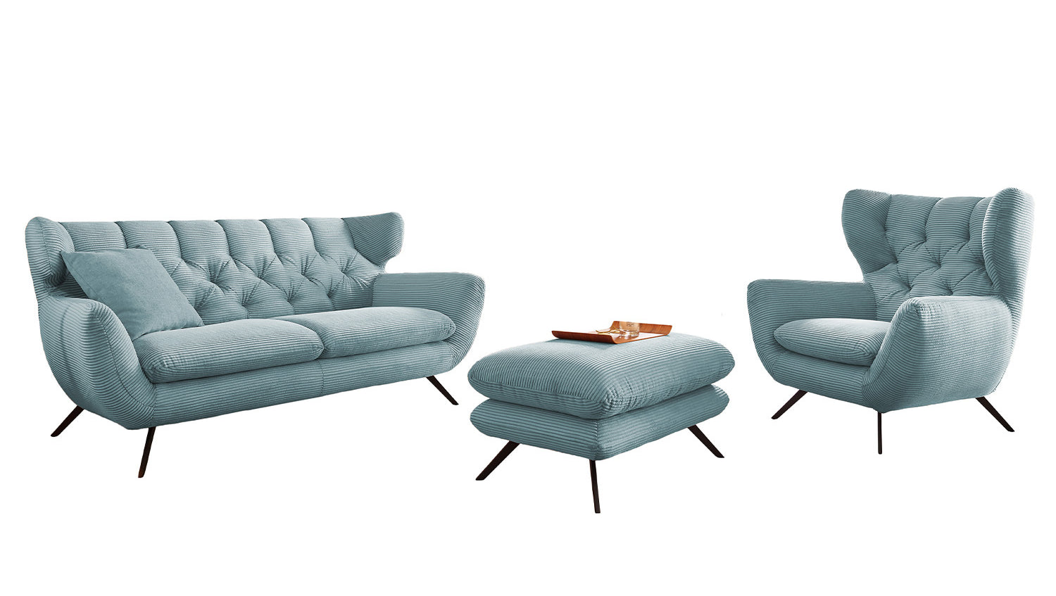 KAWOLA Sitzgruppe CHARME Sofa Sessel Hockerbank Cord hellblau