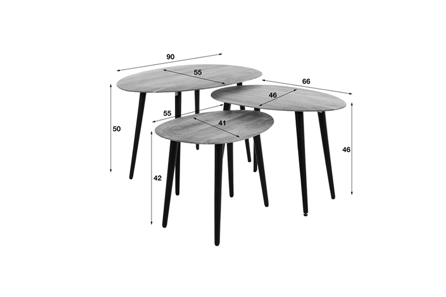 • Maße Tisch 3: 55x41x42 cm (B/T/H)