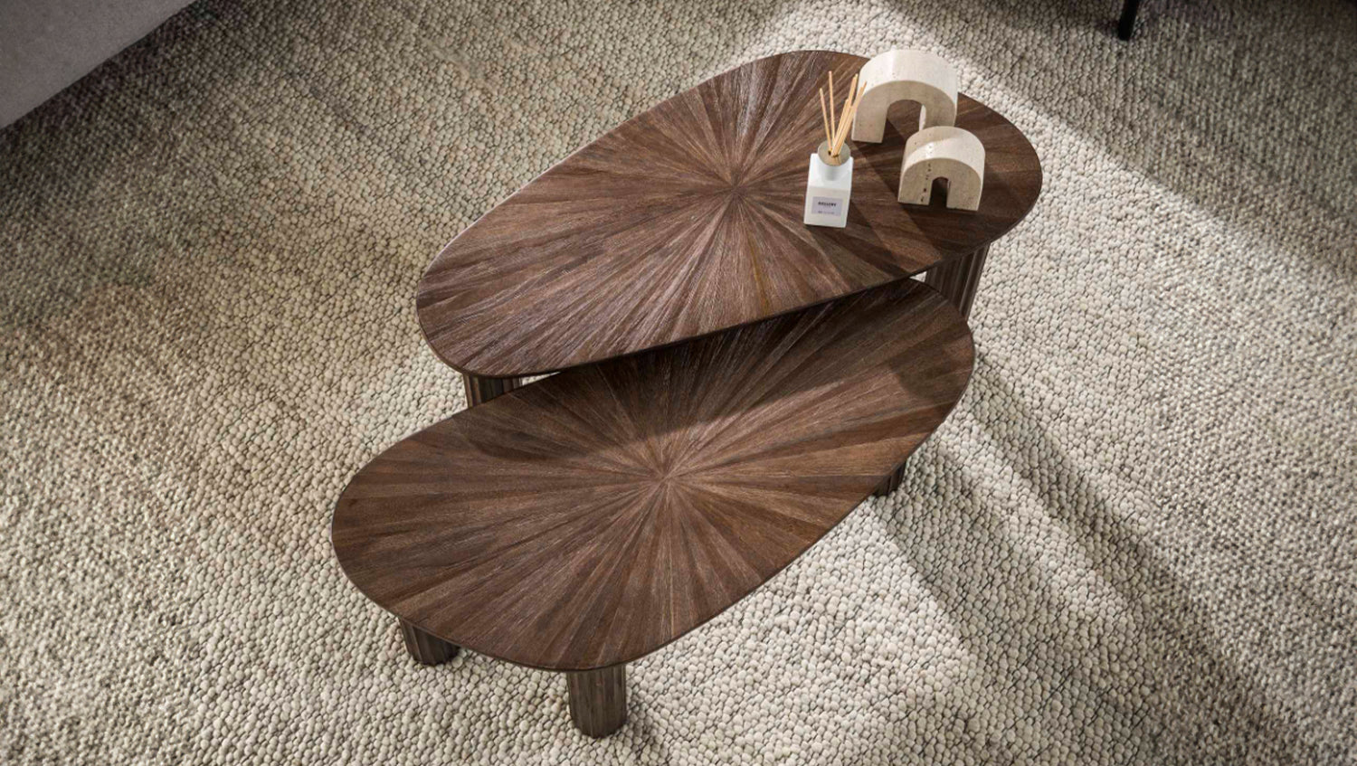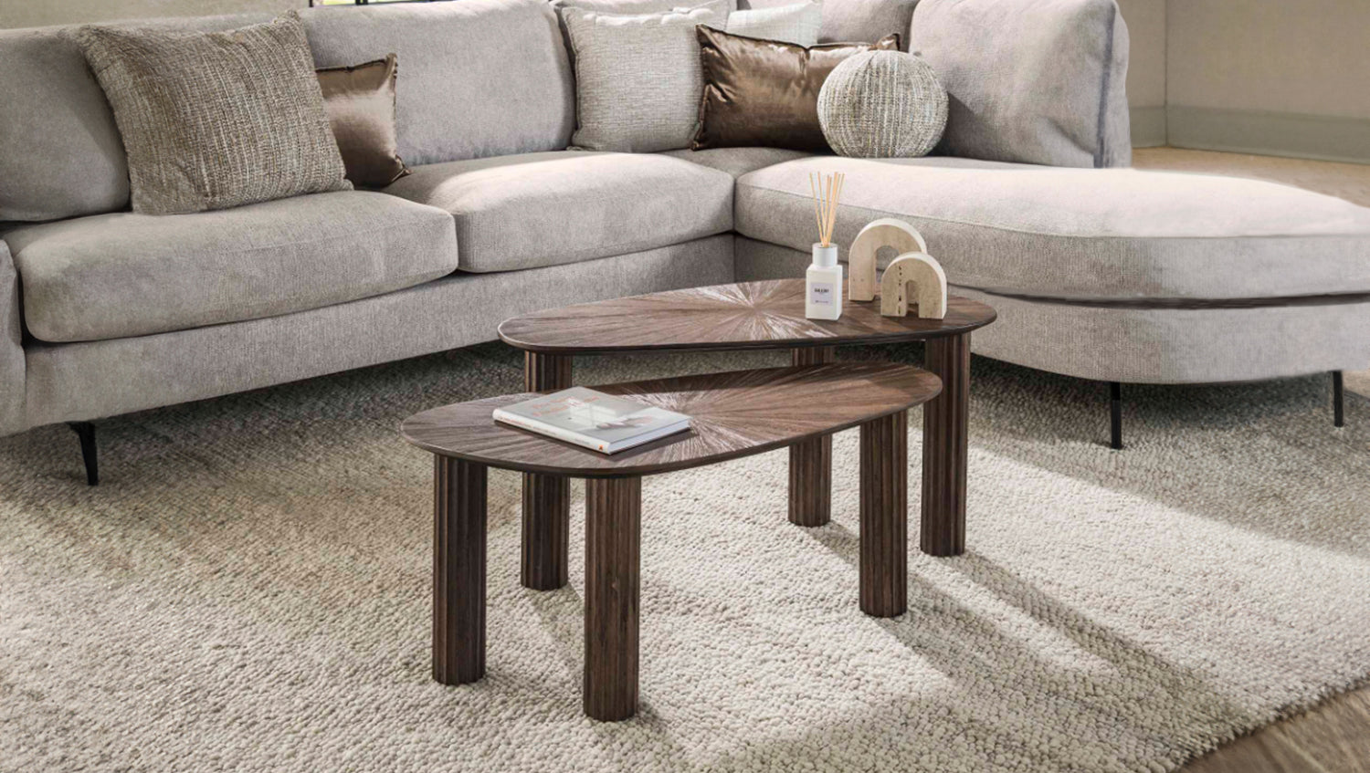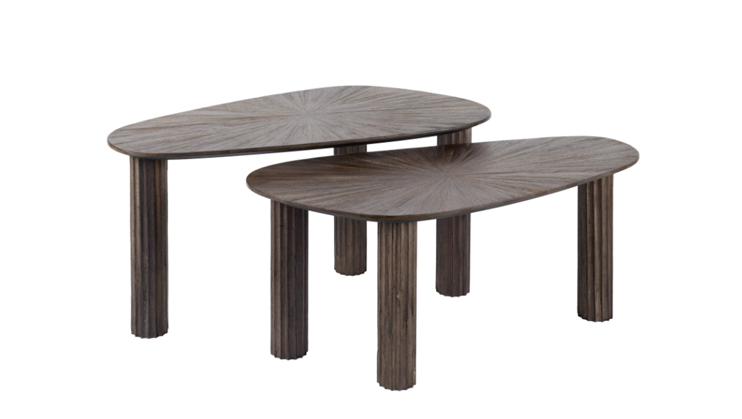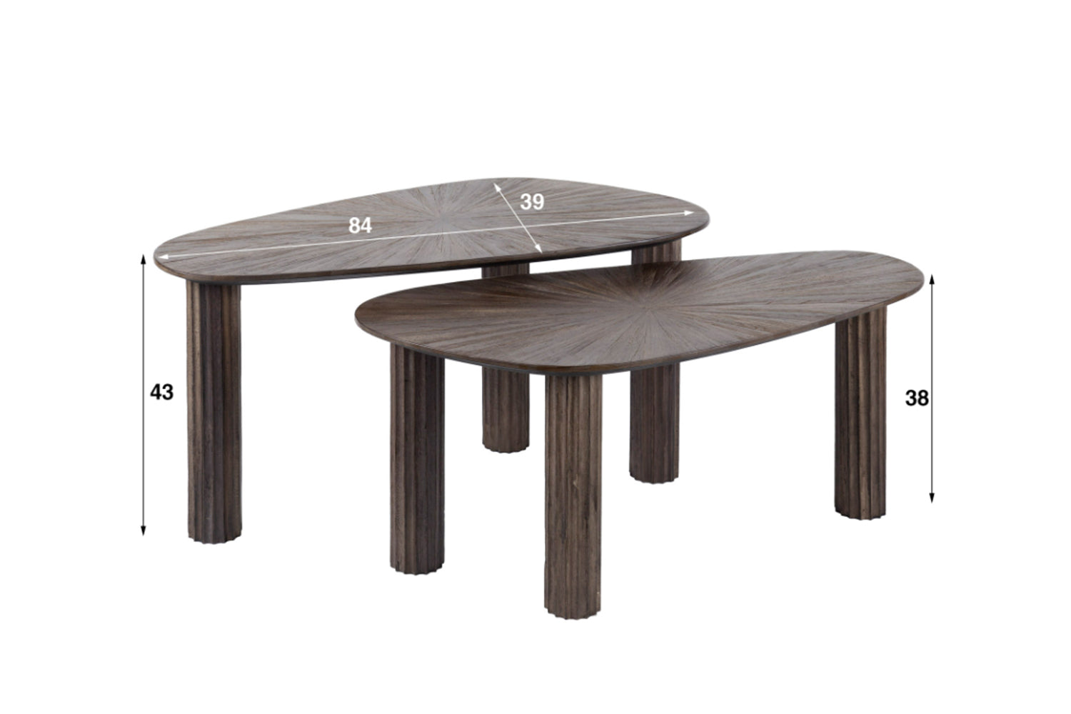 Das Couchtisch-Set INKA von KAWOLA bringt Natur und modernes Design in perfekte Balance. Die Tische wurden in einer organischen Form entworfen und aus hochwertigem Teakholz in einer modernen dunkelbraunen Farbe gefertigt. Diese Kombination sorgt dafür, dass diese Tische sowohl Stil als auch Haltbarkeit ausstrahlen. Die einzigartigen Beine mit Wellenmuster und das elegante Design der Tischplatte sorgen für einen verspielten und doch raffinierten Look. Das Set besteht aus zwei Tischen mit einer Fläche von je 84 x 39 cm. Der erste Tisch hat eine Höhe von 43 cm, der zweite Tisch hat eine Höhe von 38 cm. Ob im Wohnzimmer, in der Lounge oder als stilvolle Ablage – das Couchtisch-Set INKA passt in jedes Zuhause und setzt ein echtes Design-Statement.