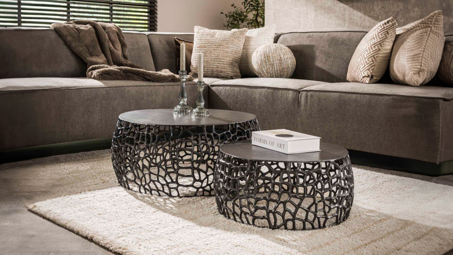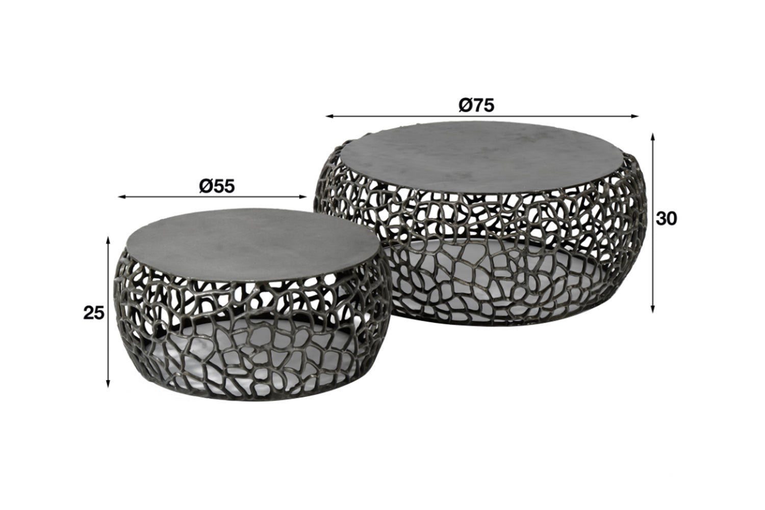 Das runde Couchtisch-Set SONO von KAWOLA besteht aus 2 Tischen. Beide Tische haben eine dünne schwarze Nickel-Sand-Besetzung. Die dekorative Basis besteht aus Aluminium und verleiht den Couchtischen eine verspielte Optik. Der größere Tisch hat einen Durchmesser von 75 cm und eine Höhe von 30 cm, der kleinere Tisch hat einen Durchmesser von 55 cm und eine Höhe von 25 cm. Dieser Couchtisch lässt sich perfekt mit verschiedenen Einrichtungsstilen kombinieren. Ob im modernen Loft, im gemütlichen Wohnzimmer oder in einer eleganten Lounge – das Couchtisch-Set SONO setzt stilvolle Akzente und verbindet Funktionalität mit zeitloser Ästhetik.
