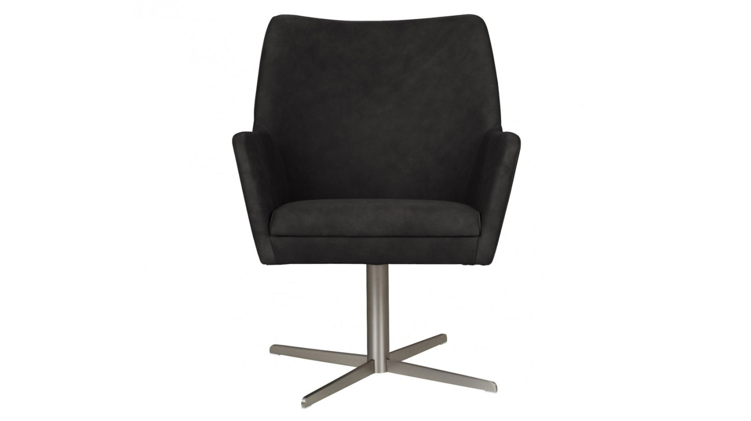 Der Drehsessel JELIA überzeugt auf den ersten Blick mit seinem modernen und vor allem minimalistischen Design. Die elegante Formsprache der Sitzschale wird durch die dunklen Kreuzfüße wunderbar abgerundet. Durch die Kaltschaumpolsterung der Sitz- und Rückenkissen sowie die Drehfunktion wird ein hoher Sitzkomfort gewährleistet. Das Leder des Bezugs ist ein naturbelassenes Anilinleder, das heißt dass Naturmerkmale wie Narben, Hornstöße und Stiche sichtbar bleiben. Zusätzlich wurde der Sessel so nachhaltig wie möglich produziert. Minimalistisches Design kommt hier mit absolutem Komfort zusammen und überzeugt langfristig.