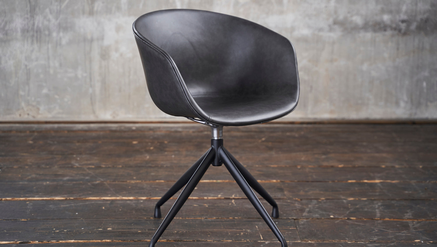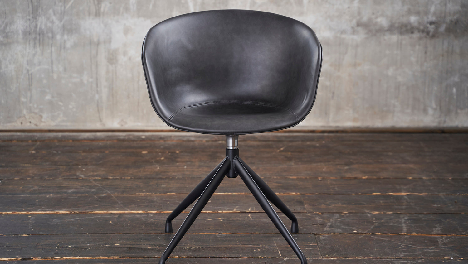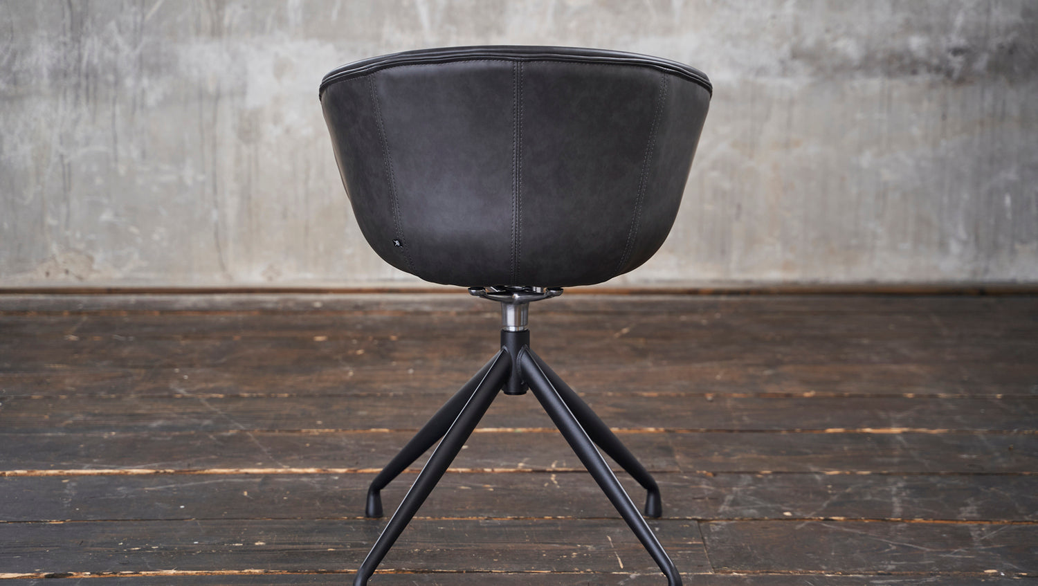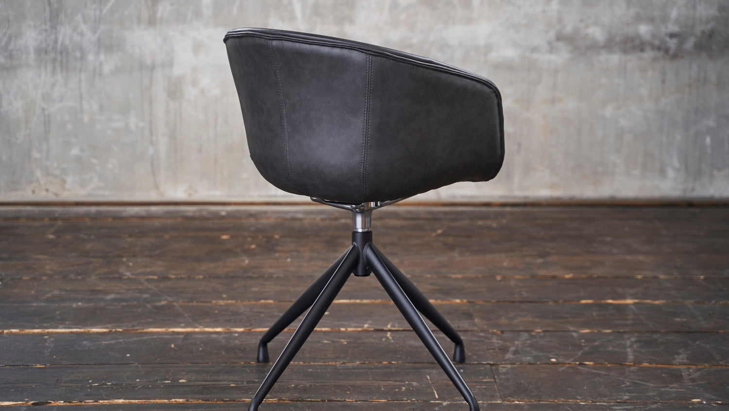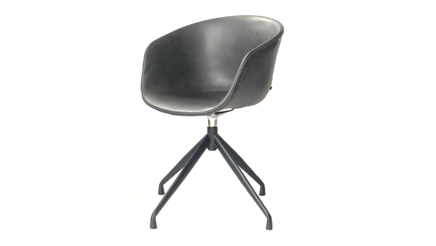 Der moderne Stuhl verfügt über ein Drehelement, dass ihn drehbar macht. Die Sitzschale ist in einem hochwertigen Kunstleder bezogen, welches sehr pflegeleicht und strapazierfähig ist.
