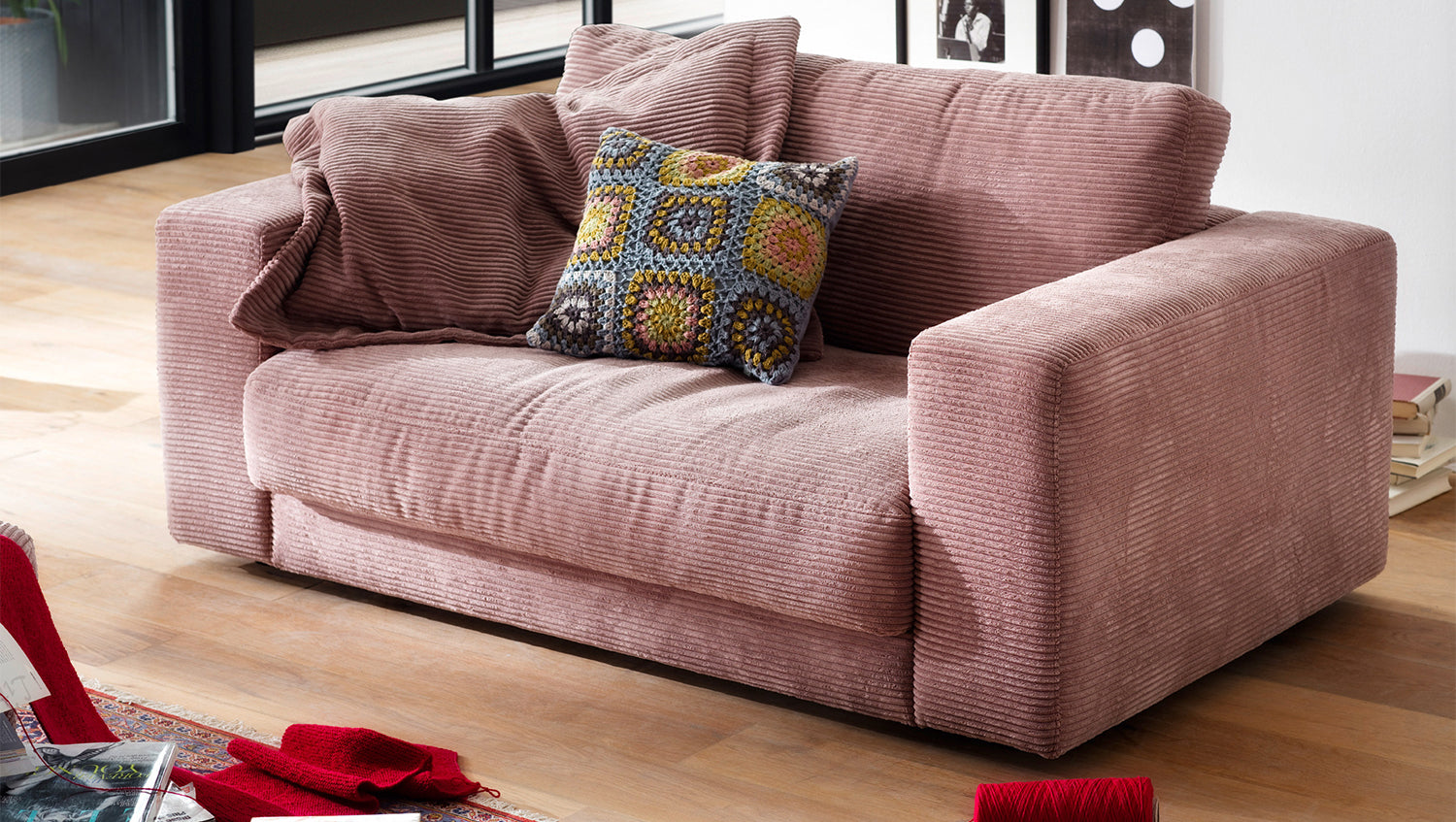 KAWOLA Doppelsessel MADELINE Loveseat Cord rosa