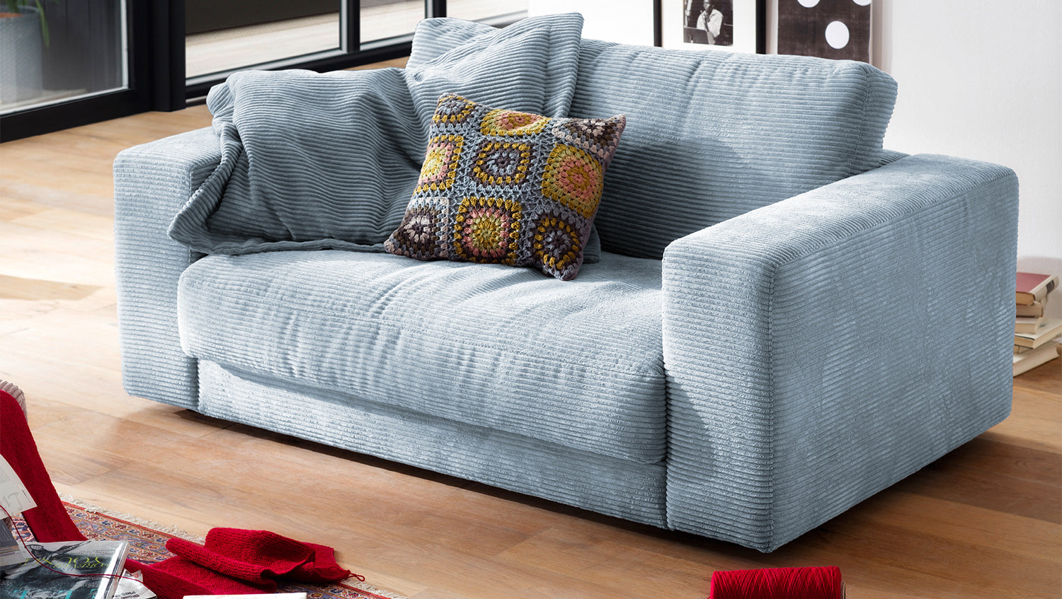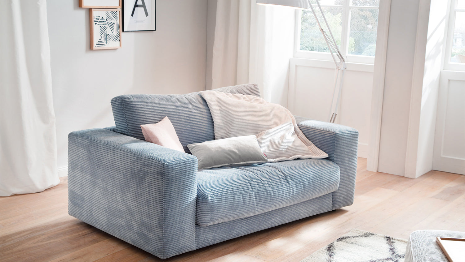 KAWOLA Doppelsessel MADELINE Loveseat Cord hellblau
