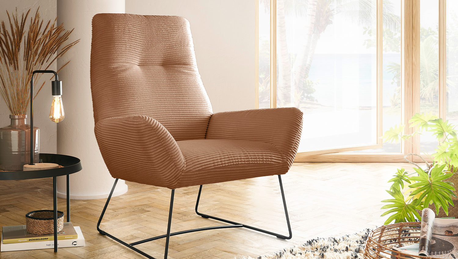 Der wunderschöne KAWOLA Sessel BISA aus angenehmem Cord macht Ihren Wohnbereich zum neuen Lieblingsort! Das Polstermöbelstück ist hochwertig verarbeitet und fügt sich toll in Ihr Zuhause ein. Die Polsterung besticht durch ihren weichen und legeren Sitzkomfort und passt sich der Körperform angenehm an. Sitzabdrücke sowie Wellenbildung der Bezüge sind warentypisch. Der Sitz besteht aus einer Unterfederung mit dauerelastischen Stahl-Wellenfedern, einer oberseitigen Abdeckung und PUR-Schaum. Die Rückenpolsterung aus ergonomisch geformtem PUR-Schaumstoff ist schichtweise aufgebaut in verschiedenen Härten und Stärken. Optimaler Sitzkomfort ist hier garantiert. Ob nun beim Lesen eines guten Buchs, einem entspannten Abend mit Freunden oder beim Filmschauen - der KAWOLA Sessel BISA ist immer eine gute Wahl.