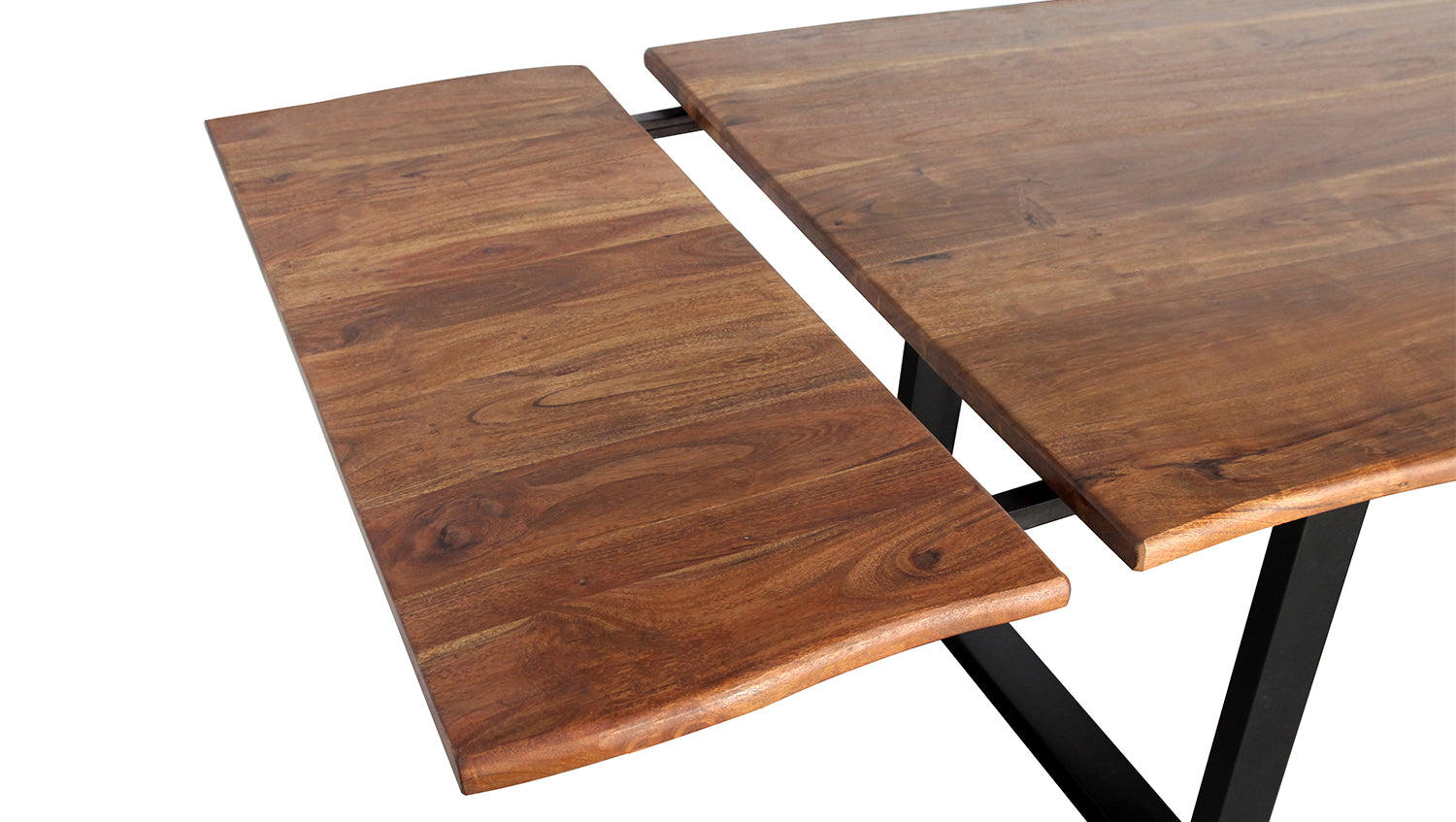 KAWOLA Esstisch LORE 140x90cm Akazie massiv nussbaumfarben natürliche Baumkante mit 2 Ansteckplatten