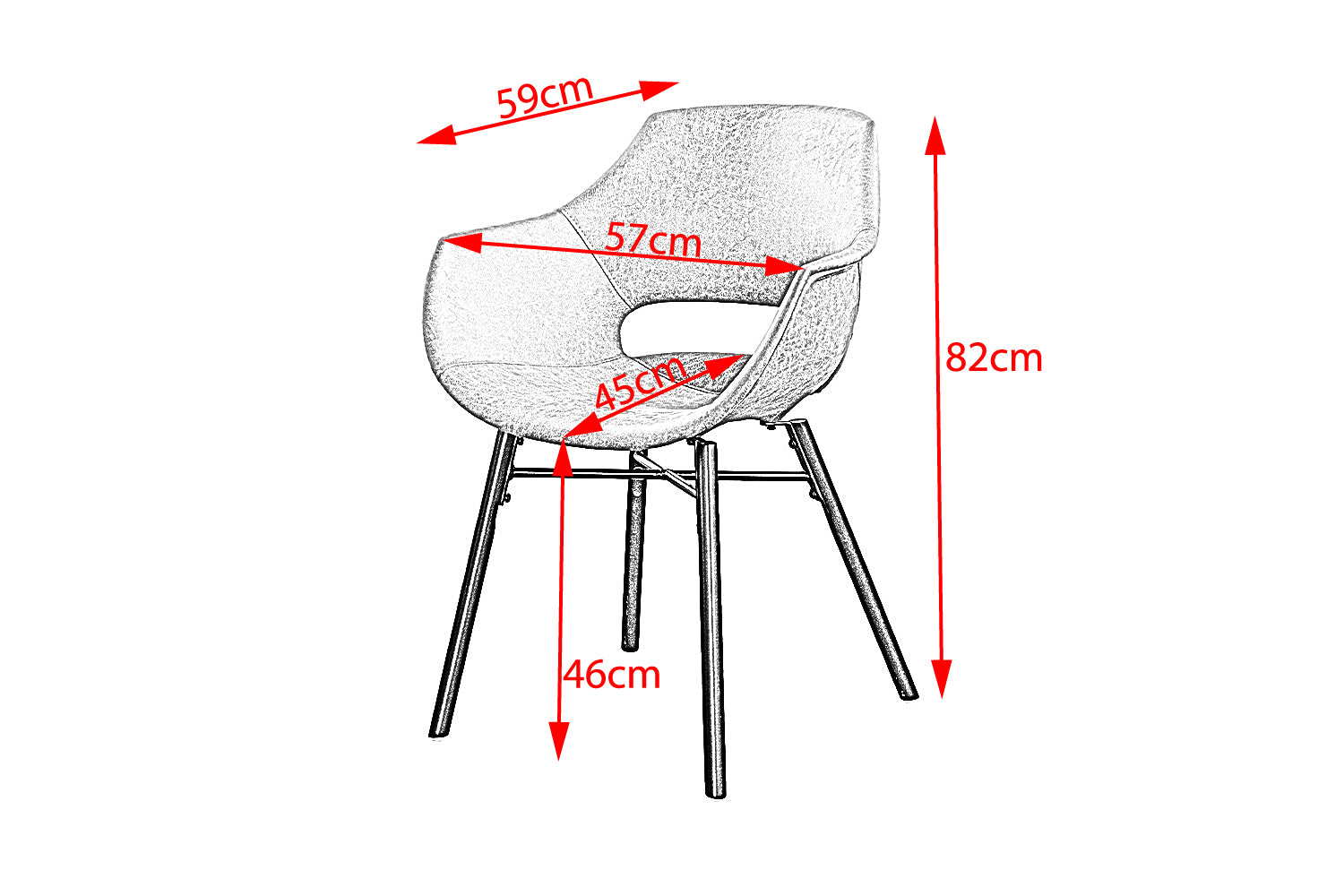 Mit seinen komfortablen Abmessungen bietet der Esszimmerstuhl ZAJA ausreichend Platz und Bewegungsfreiheit. Die Höhe der Armlehne vom Boden beträgt 68 cm, die Innenhöhe 22 cm. Die Breite zwischen den Beinen außen liegt bei 52 cm, innen bei 47 cm. Dieser Stuhl ist nicht nur ein optisches Highlight, sondern auch ein funktionales Möbelstück, das Ihren Alltag bereichern wird. Genießen Sie entspannte Stunden in Ihrem Esszimmer mit dem modernen Esszimmerstuhl ZAJA.