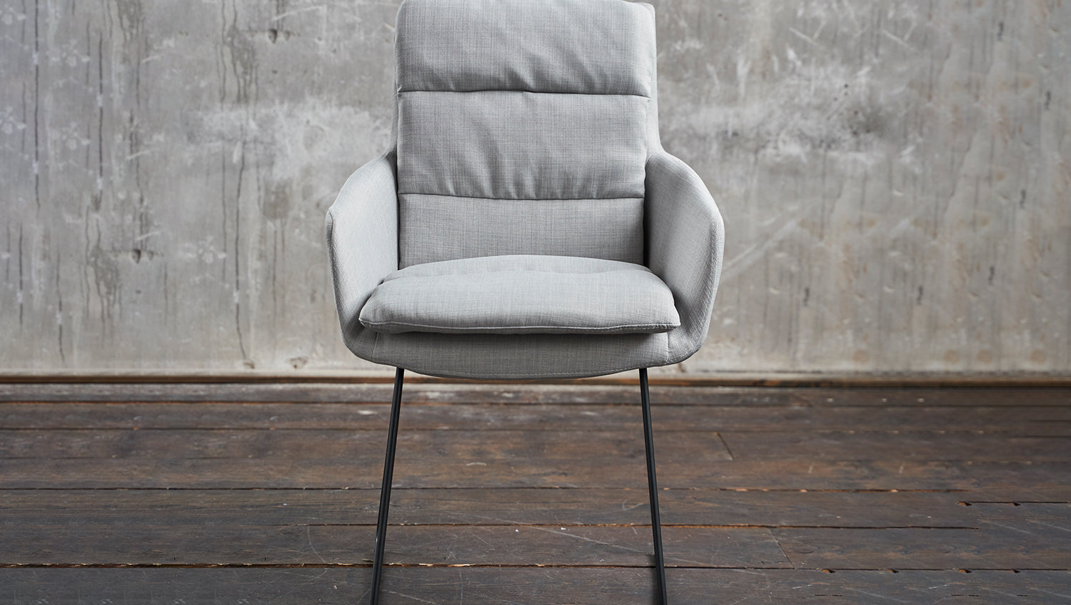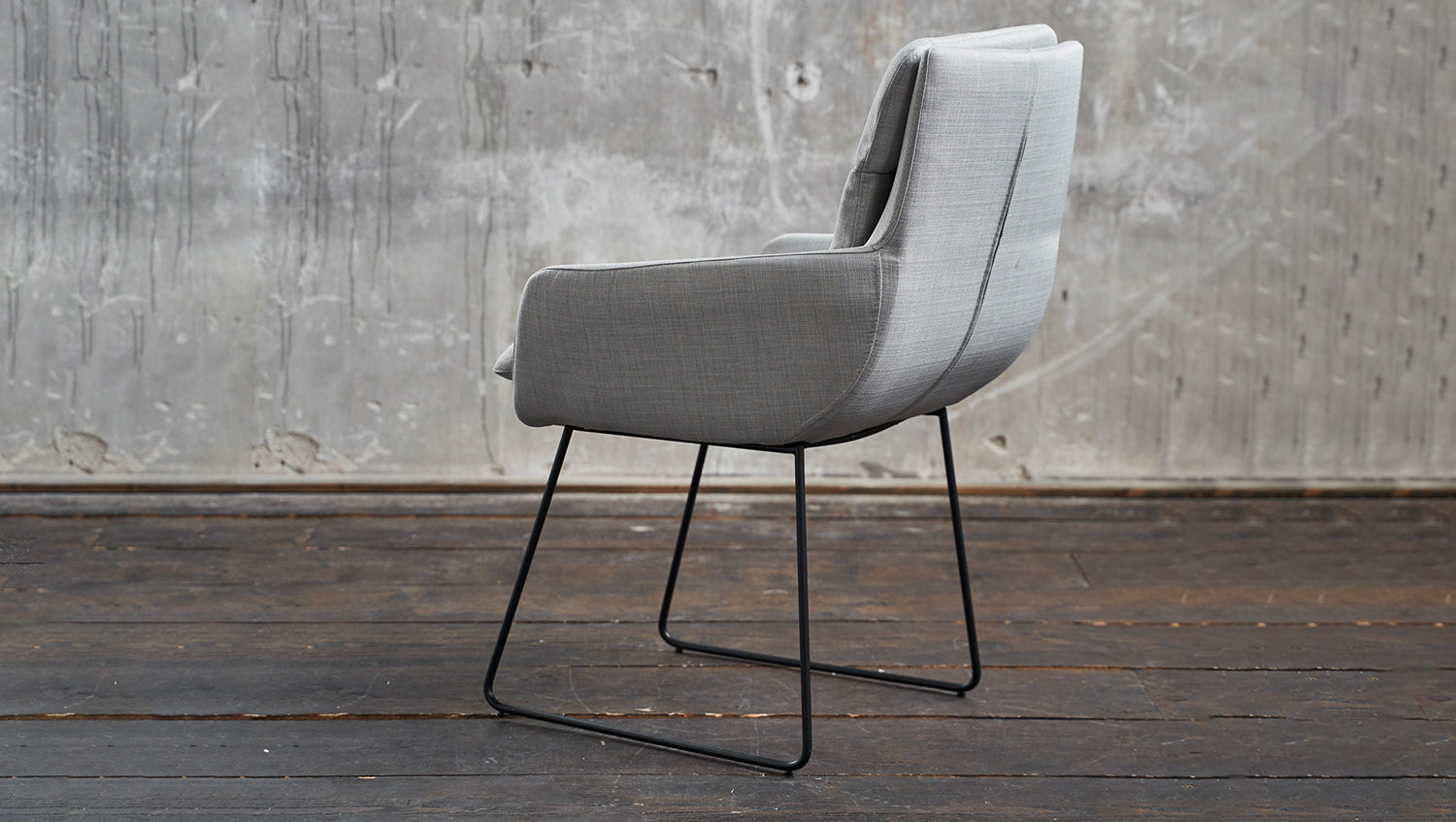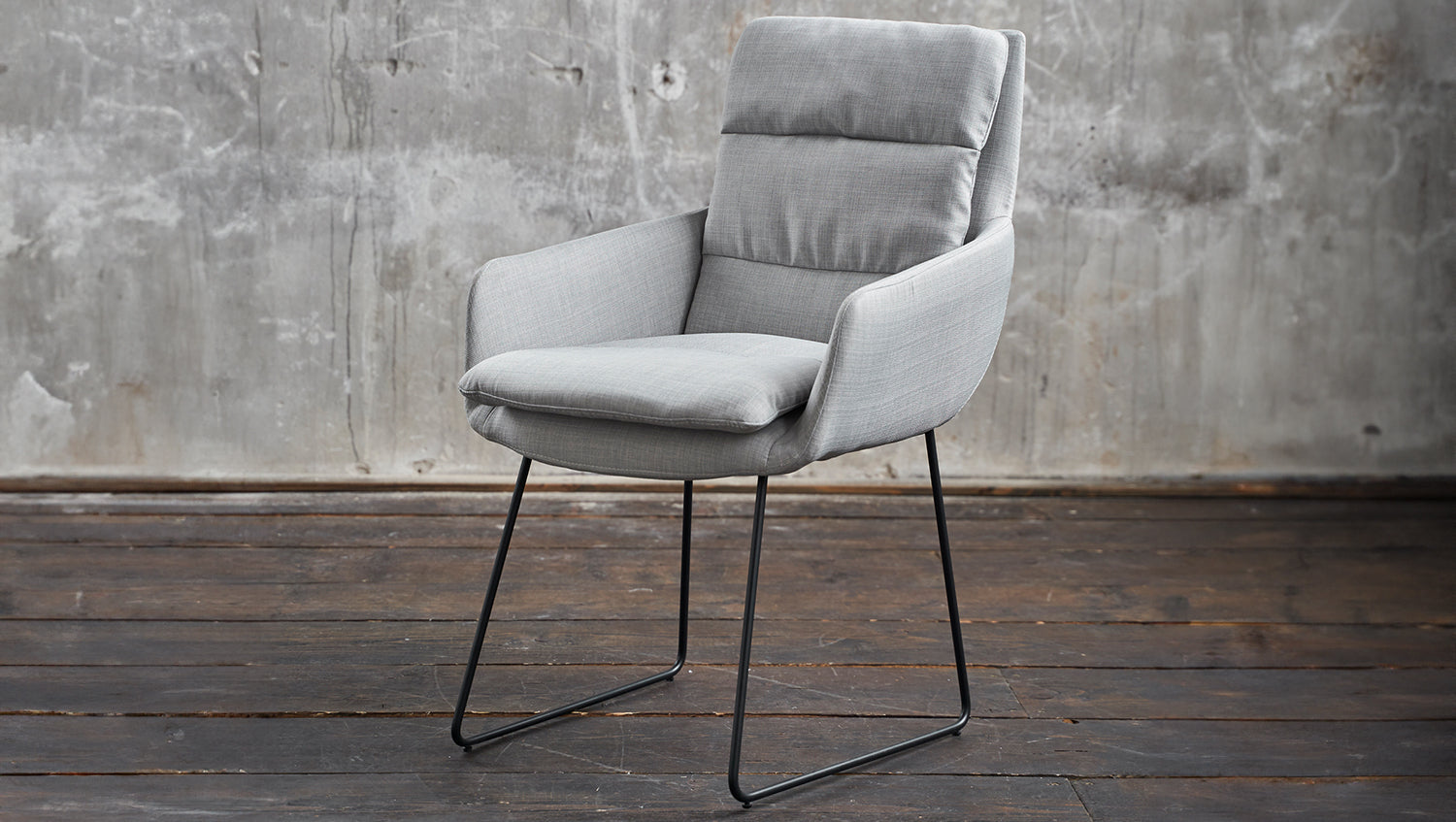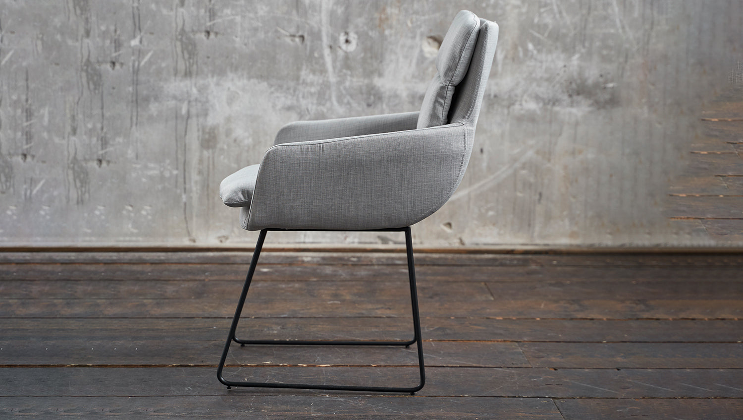 KAWOLA Stuhl VINCE Esszimmersessel Stoff hellgrau Kufenfuß schwarz