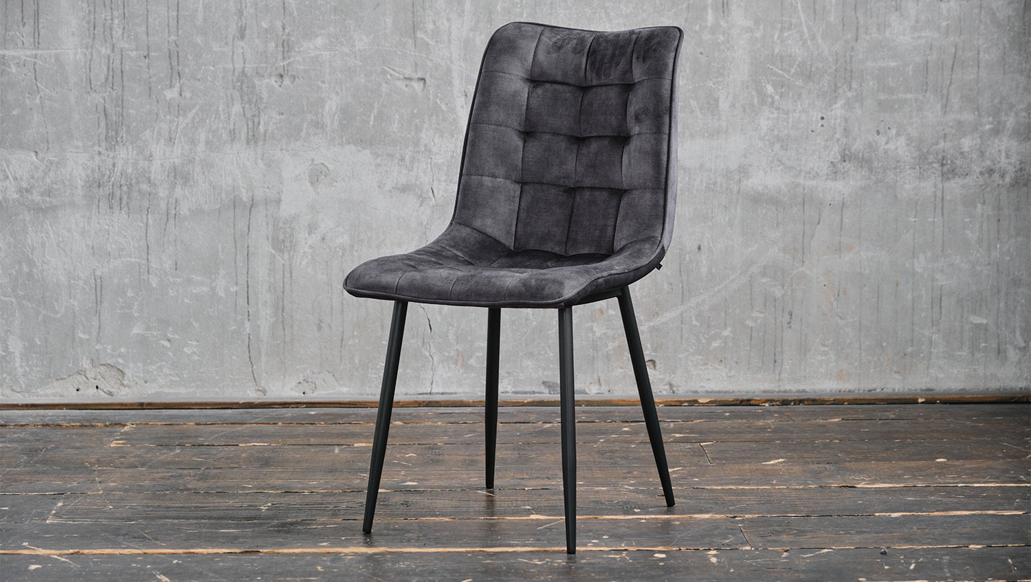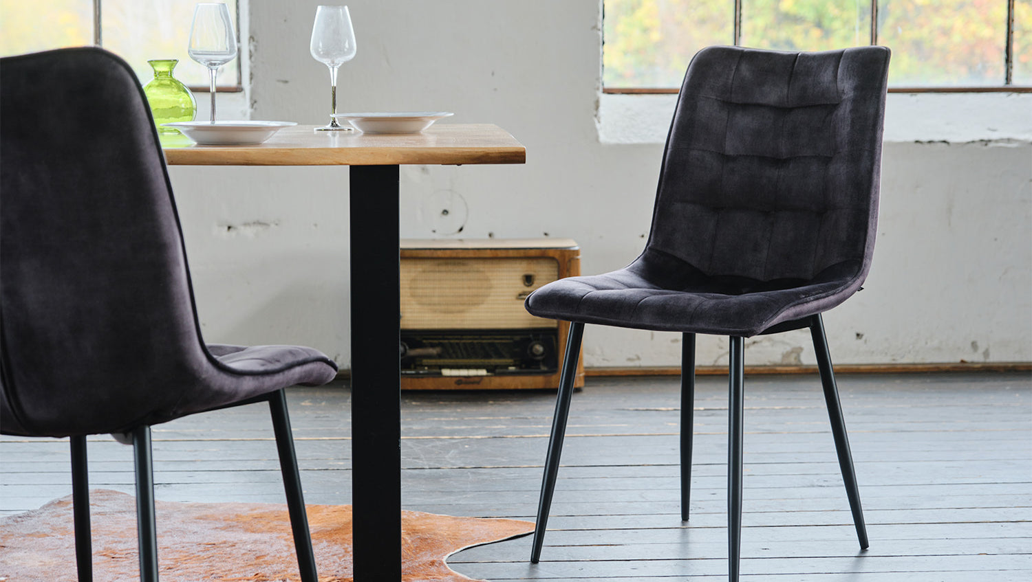 Der Stuhl CLARA vereint industrielles und modernes Wohndesign. Hier können Sie sich bequem zurücklehnen und stilvoll speisen. Der Bezugsstoff aus Velvet ist sehr hochwertig verarbeitet und die aufwendige Absteppung verleiht dem Stuhl seinen besonderen Look. Ob im Büro oder im Esszimmer - der Stuhl CLARA eignet sich aufgrund seines modernen Designs für praktisch jeden Wohnbereich.
