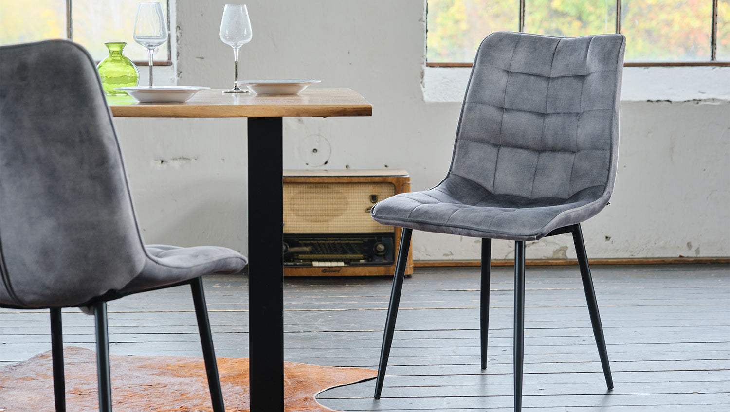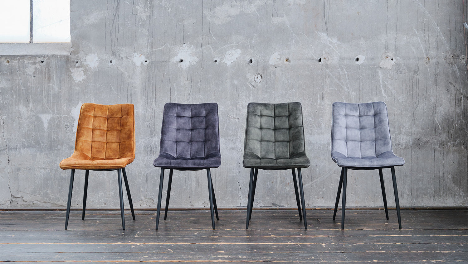 Der Stuhl CLARA vereint industrielles und modernes Wohndesign. Hier können Sie sich bequem zurücklehnen und stilvoll speisen. Der Bezugsstoff aus Velvet ist sehr hochwertig verarbeitet und die aufwendige Absteppung verleiht dem Stuhl seinen besonderen Look. Ob im Büro oder im Esszimmer - der Stuhl CLARA eignet sich aufgrund seines modernen Designs für praktisch jeden Wohnbereich.