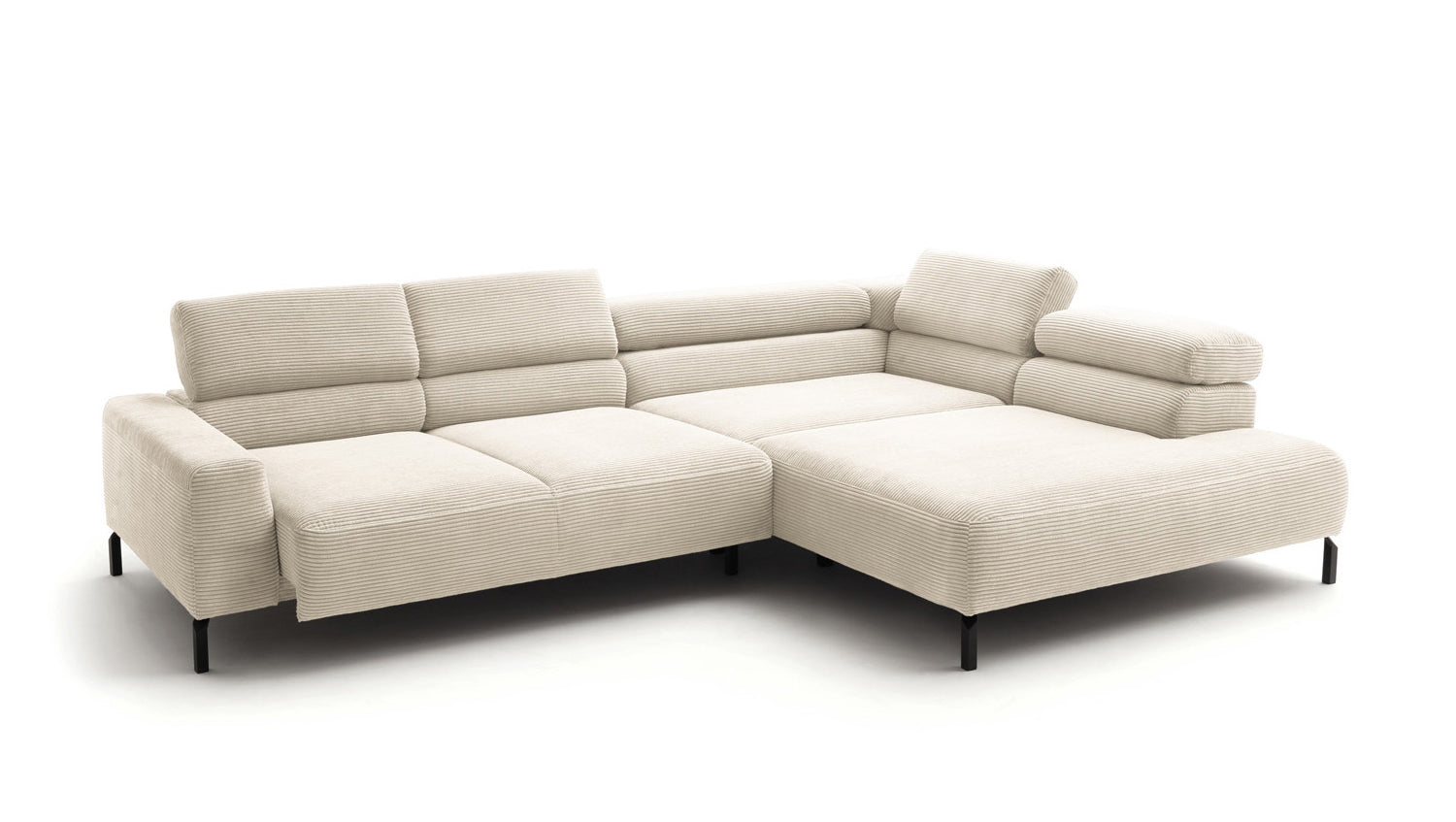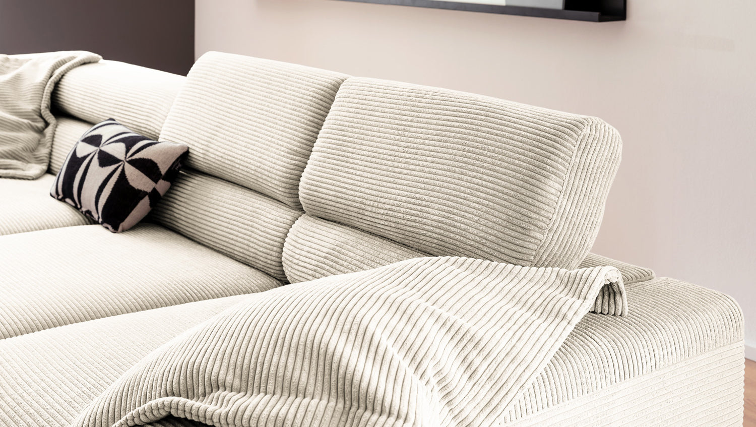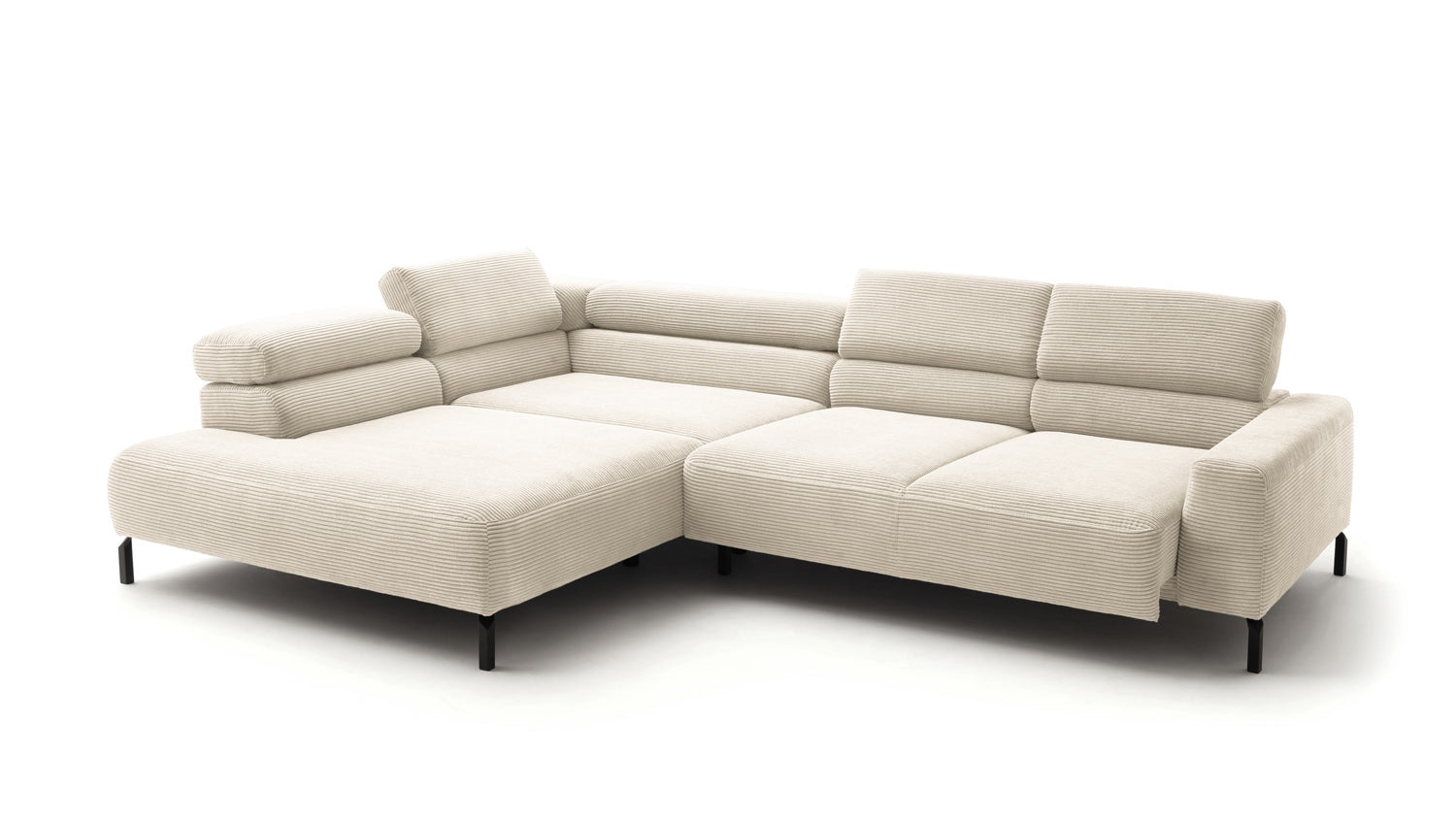 Ein Highlight ist die innovative Kopfteilverstellung, mit der Sie die Kopfteile individuell neigen oder aufrecht stellen können. Perfekt für entspannte Abende beim Lesen oder Filme schauen. Das Ecksofa DELIA vereint Funktionalität und Stil auf höchstem Niveau.
