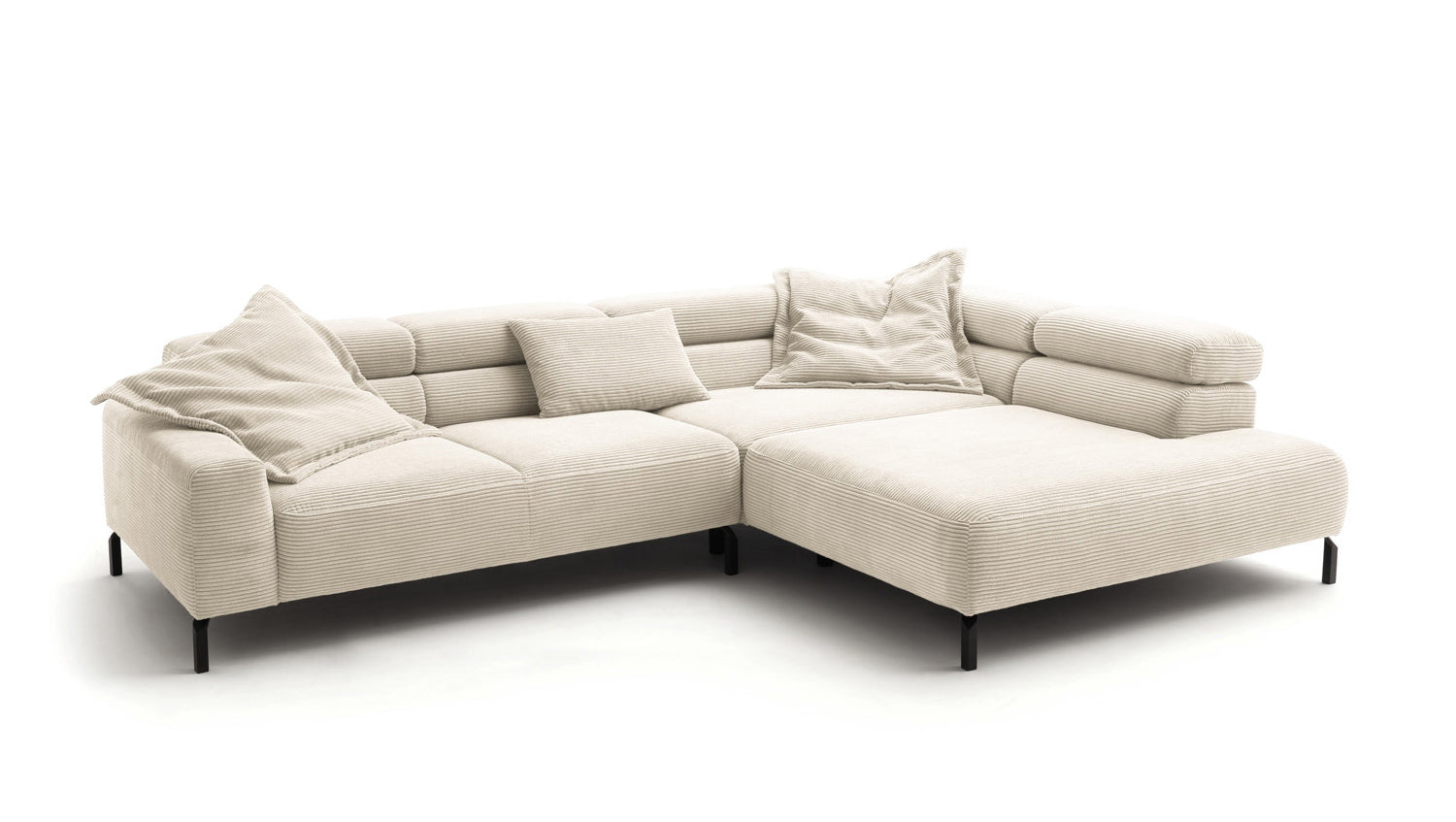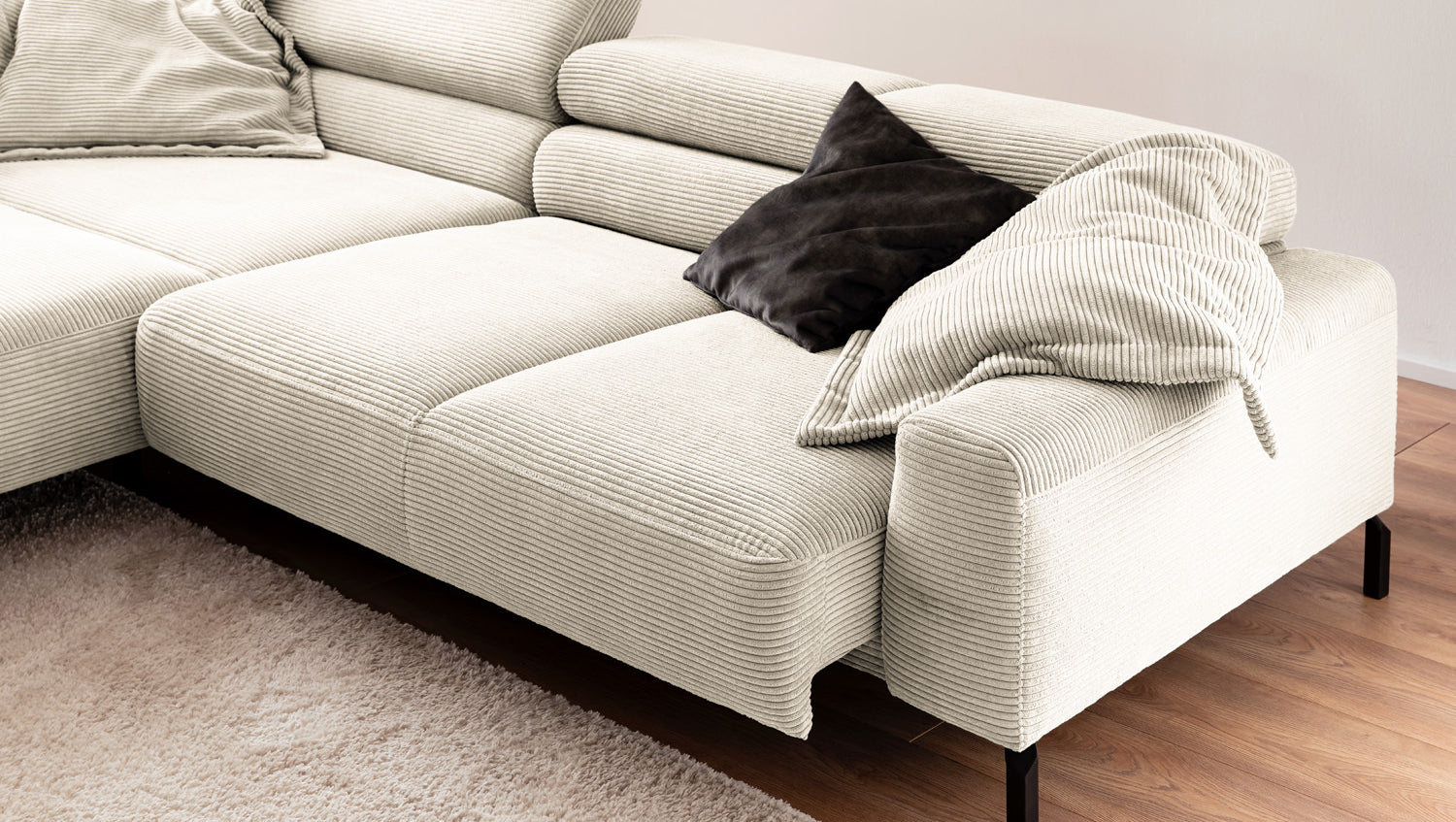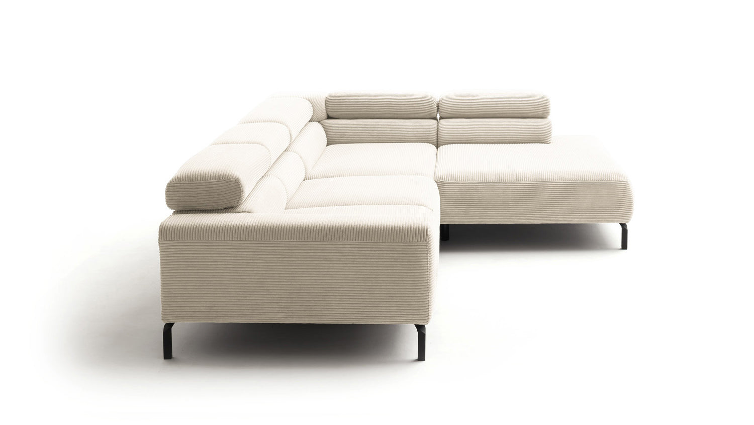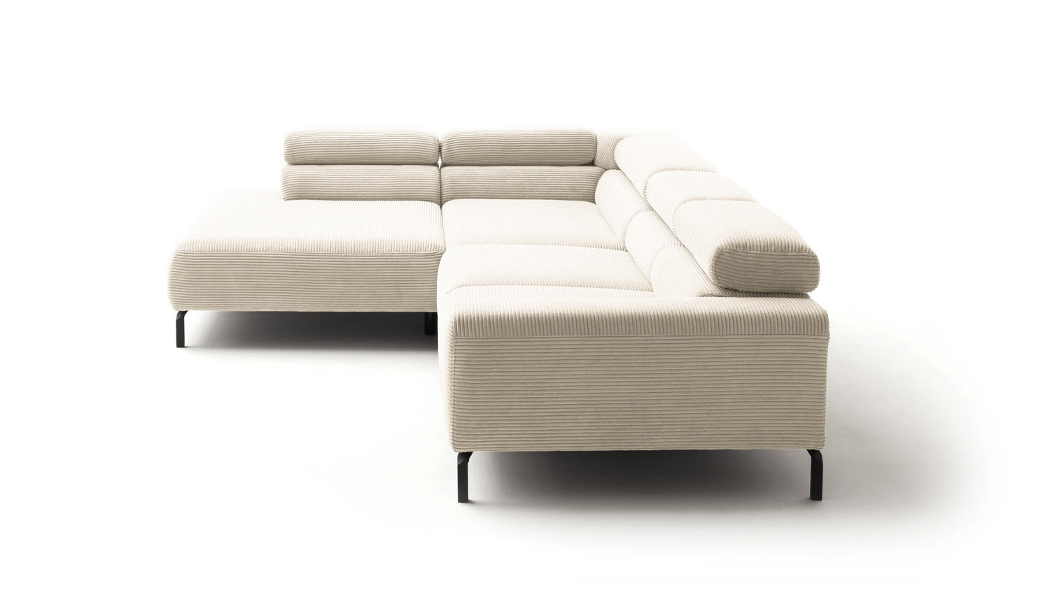 Ein Highlight ist die innovative Kopfteilverstellung, mit der Sie die Kopfteile individuell neigen oder aufrecht stellen können. Perfekt für entspannte Abende beim Lesen oder Filme schauen. Das Ecksofa DELIA vereint Funktionalität und Stil auf höchstem Niveau.