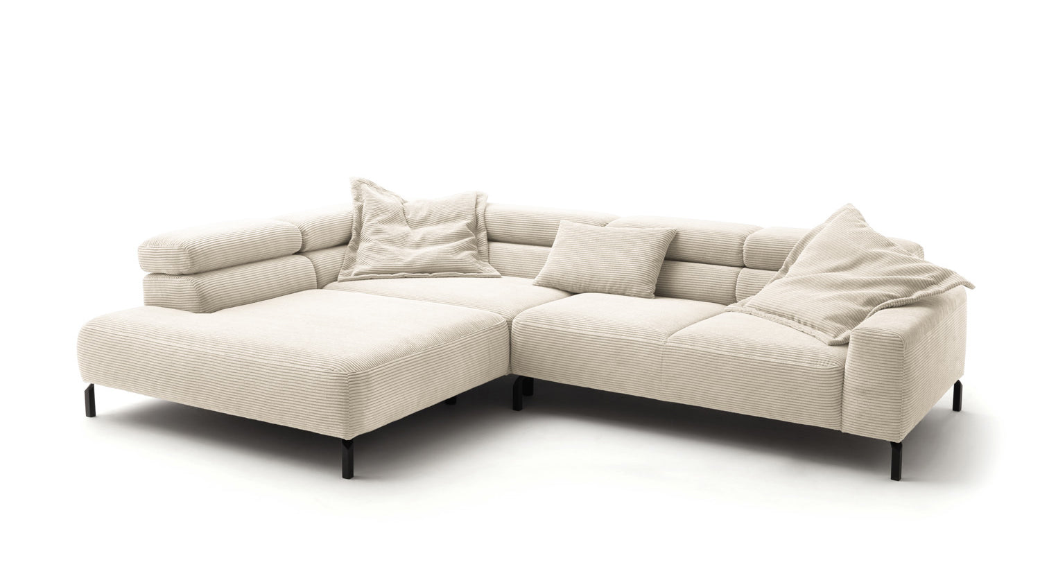 Entdecken Sie das exklusive Ecksofa DELIA von KAWOLA – ein wahres Meisterwerk in puncto Design und Komfort. Der Rundumbezug aus hochwertigem Cord verleiht diesem Sofa eine luxuriöse Note und sorgt für ein einladendes Ambiente. Die schwarzen Metallfüße setzen elegante Akzente und garantieren Stabilität.