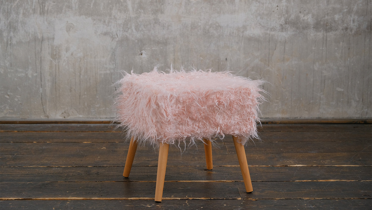 KAWOLA Hocker Fell FYNN Flokati Fellhocker rosa