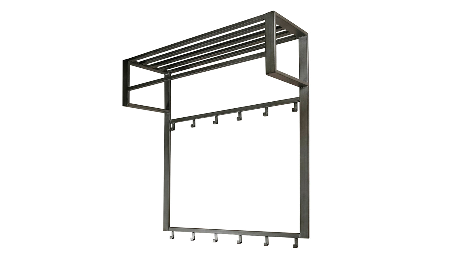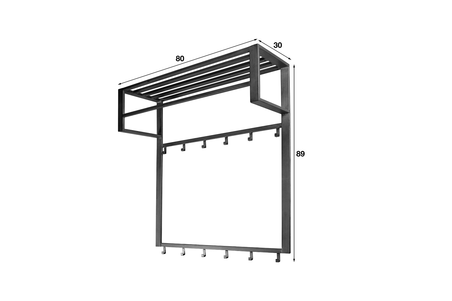 Die Wandgarderobe LEONOR von KAWOLA vereint funktionale Eleganz mit durchdachtem Design. Gefertigt aus grauem pulverbeschichtetem Stahl, bietet dieses Modell eine Hutablage, eine Stange und 12 Haken für ausreichend Platz zum Aufhängen von Mänteln, Jacken und Taschen - sowohl direkt an den Haken als auch auf einem Kleiderbügel. Die Hutablage bietet zusätzlichen Stauraum für Schals, Mützen oder andere Accessoires. Mit zwei Befestigungsösen auf der Rückseite lässt sich die 80 cm breite, 89 cm hohe und 30 cm tiefe Garderobe mühelos an der Wand montieren. Perfekt für Flur, Diele oder Eingangsbereich – LEONOR steht für stilvolle Ordnung in Ihrem Zuhause!