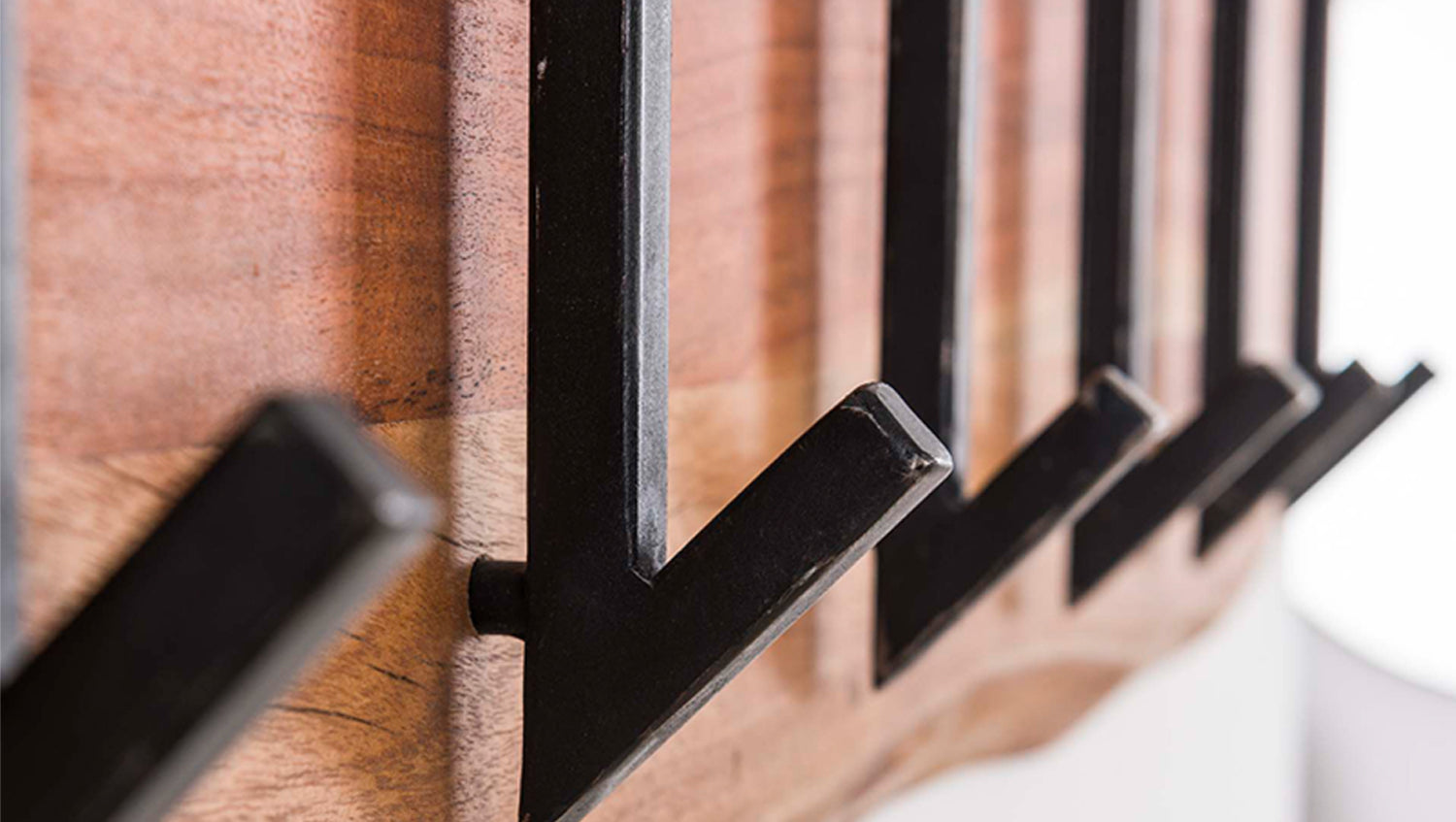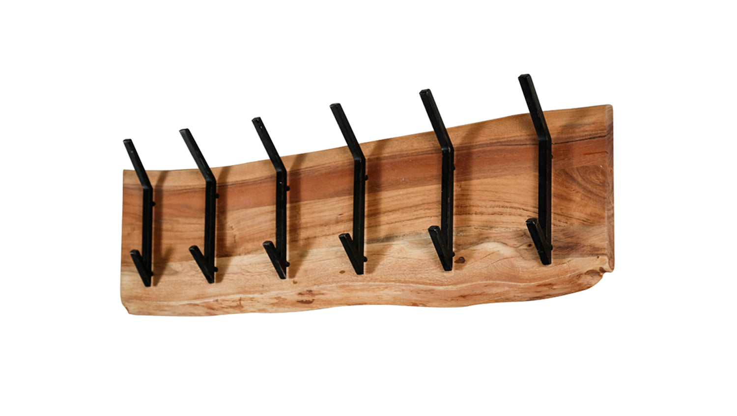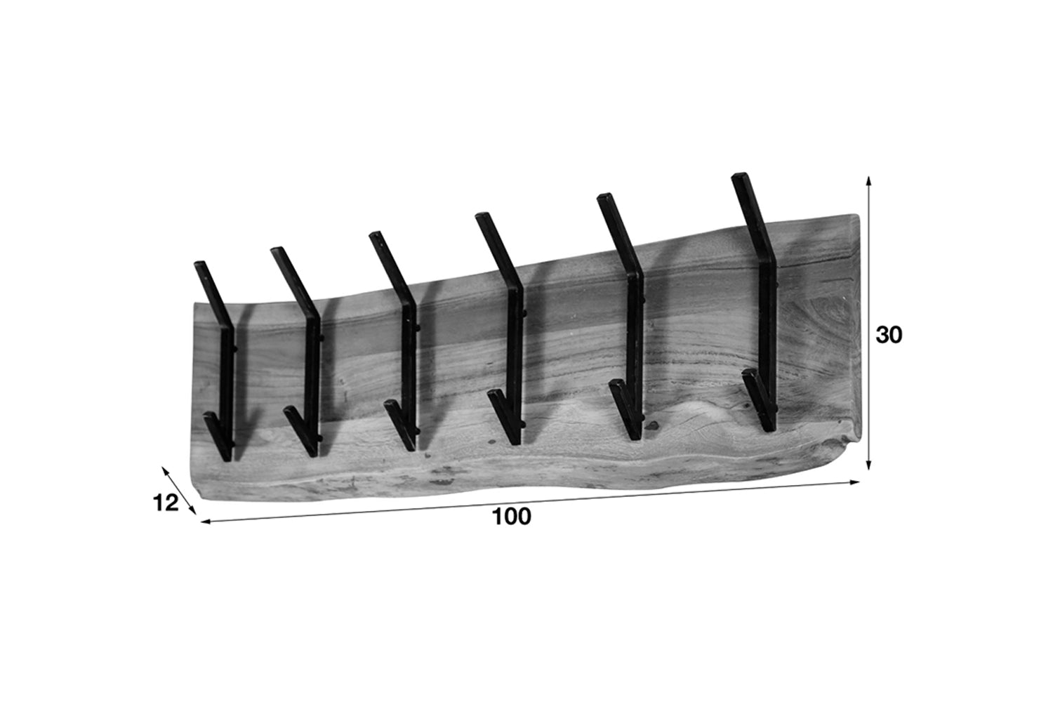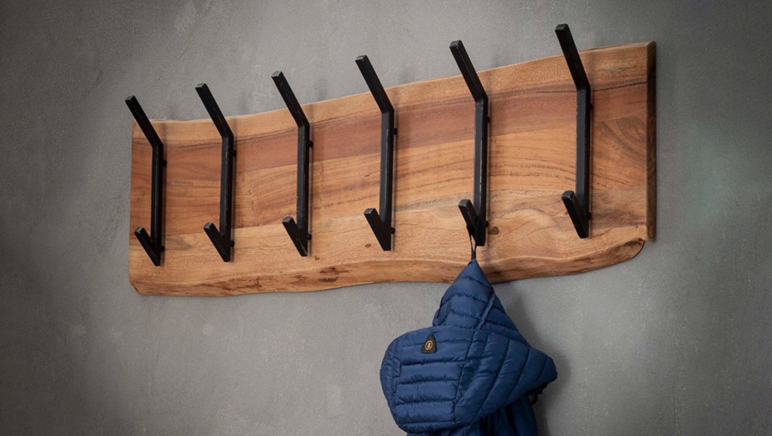 Die Wandgarderobe NEREA von KAWOLA überzeugt mit ihrem einzigartigen, natürlichen Design. Gefertigt aus massivem Akazienholz, besticht sie durch ihre feine Maserung und markanten Äste, die ihr einen besonderen Charme verleihen. Das Holz wird nach traditionellen Methoden verarbeitet, was der Garderobe einen natürlichen und einzigartigen Look verleiht. 12 robuste Haken aus schwarz geschliffenem Metall bieten Platz für Jacken, Taschen und Accessoires. Dank der zwei Befestigungsösen auf der Rückseite lässt sich die 100 cm breite, 30 cm hohe und 12 cm tiefe Garderobe mühelos an der Wand montieren. Stilvoll, kompakt und funktional - NEREA ist die perfekte Wahl für Flur, Diele oder Schlafzimmer!