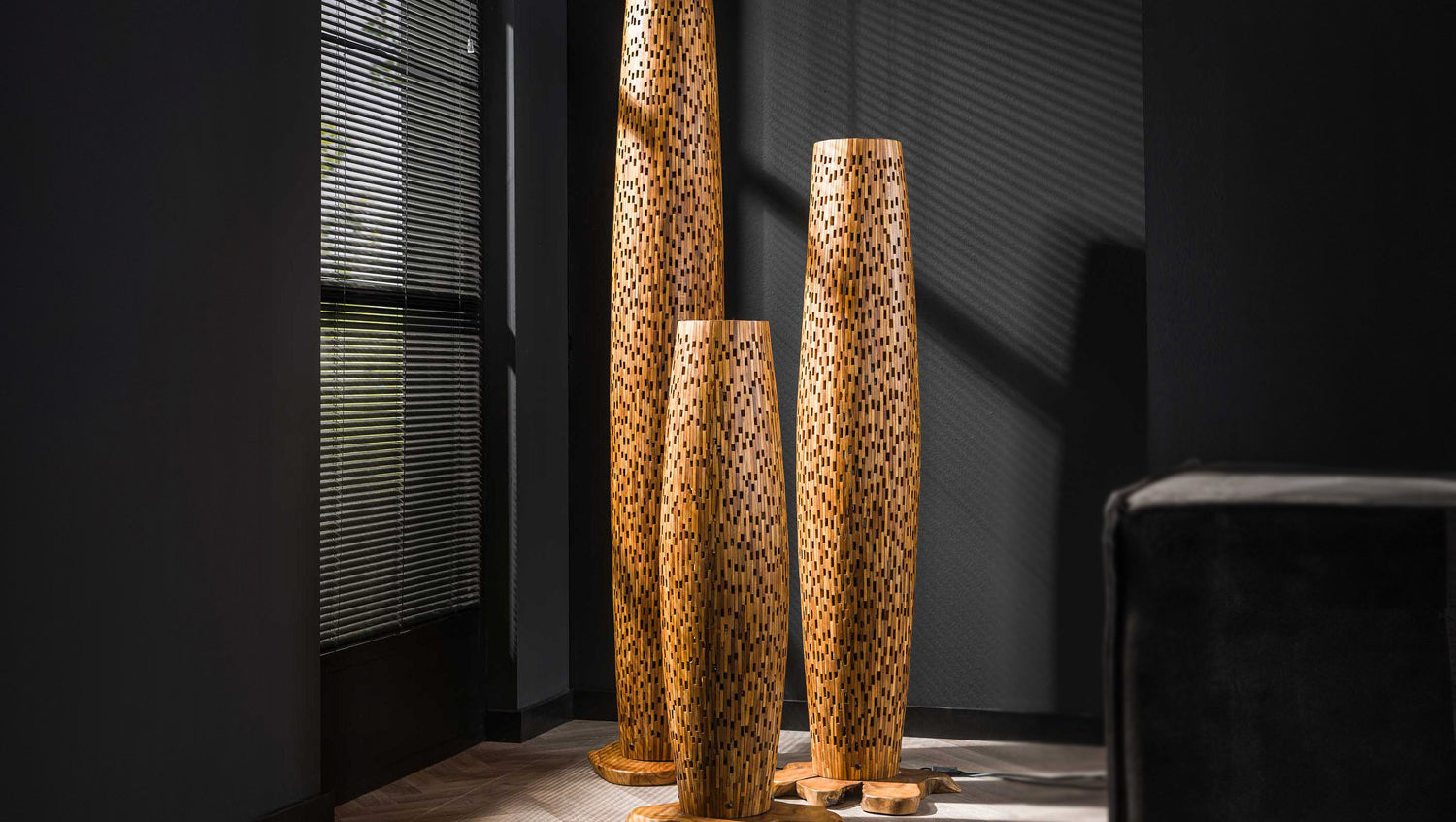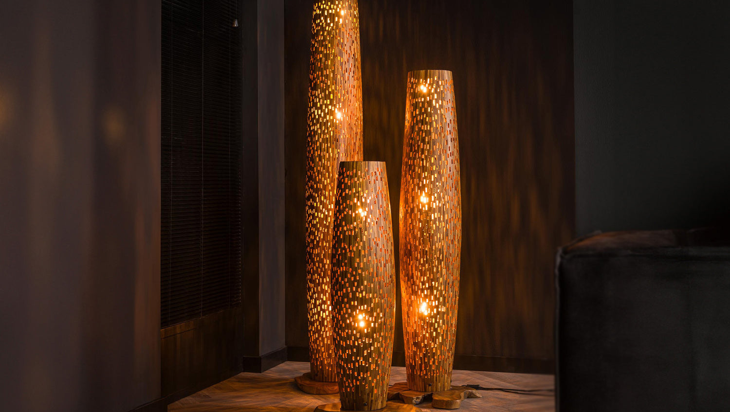 Die KAWOLA Stehleuchte EDEIA vereint funktionales Design mit einzigartiger Ästhetik. Gefertigt aus recyceltem Teakholz, beeindruckt diese Lampe durch ihre kreative Verwendung von Teakholzstücken, die mit Öffnungen versehen sind. Das Licht scheint spielerisch durch diese Öffnungen und erzeugt faszinierende Licht- und Schatteneffekte. Mit ihrem hochwertigen Material und dem stilvollen Design bringt die KAWOLA EDEIA sowohl Eleganz als auch eine besondere Atmosphäre in Ihr Zuhause - ideal für moderne und natürliche Einrichtungsstile.
