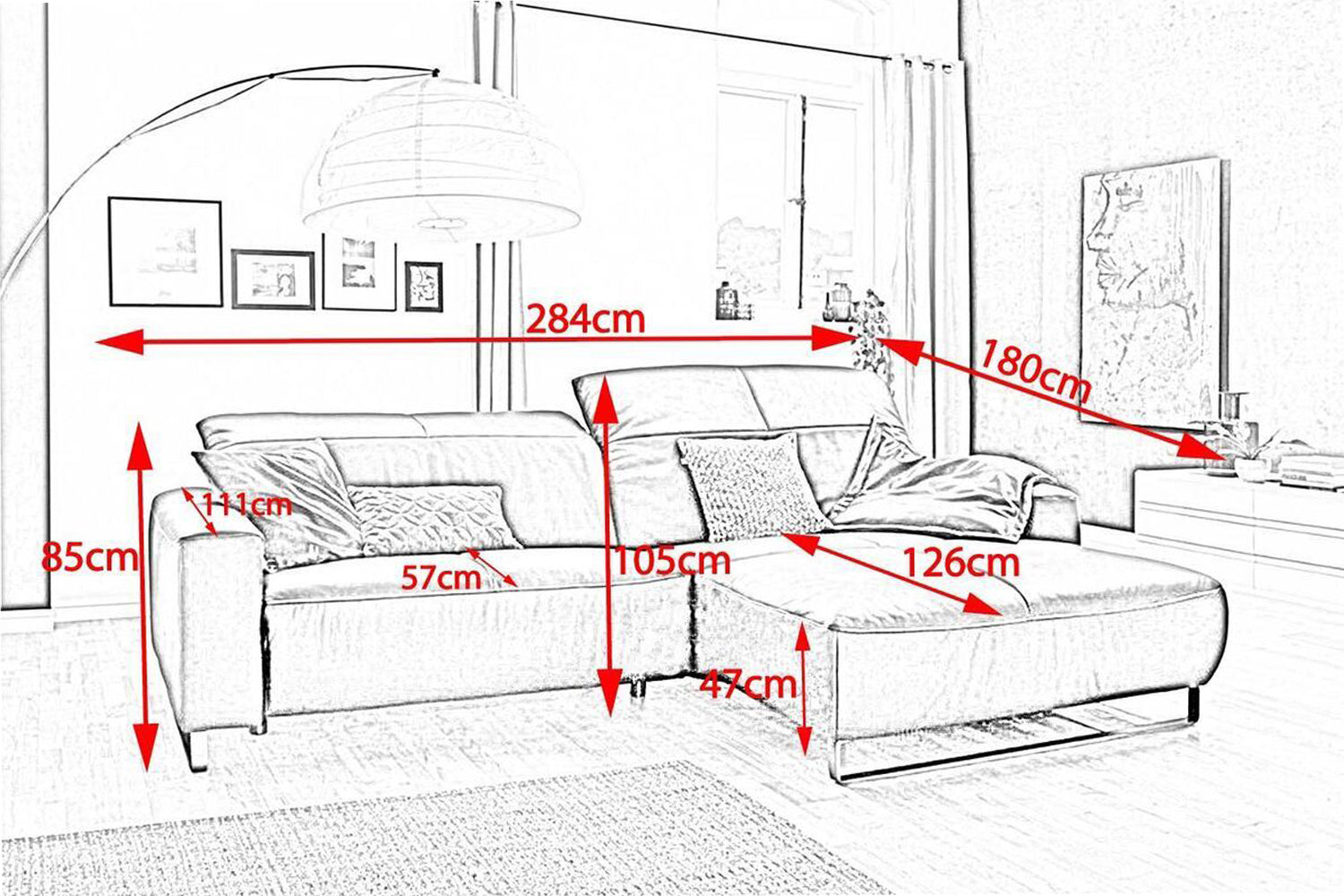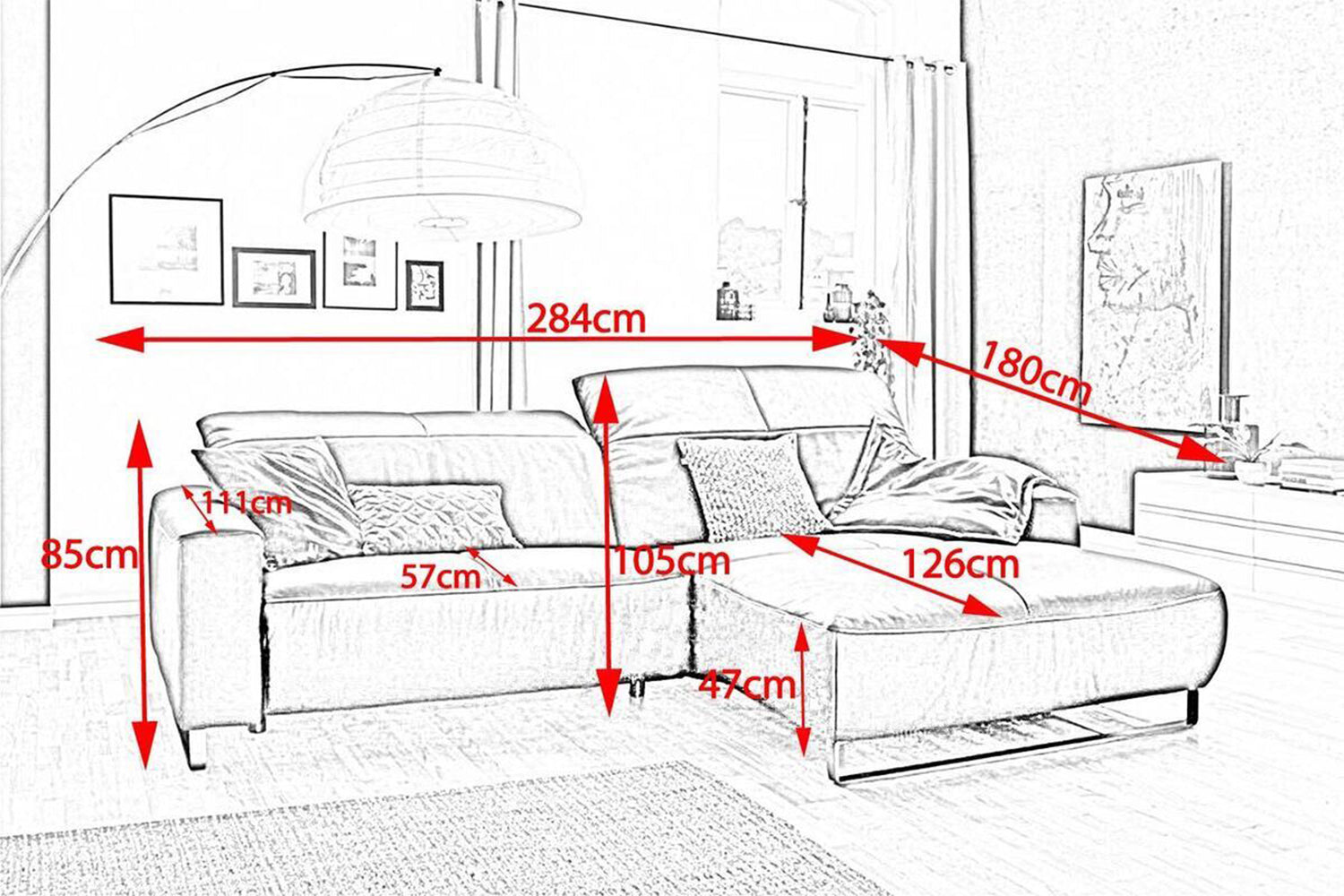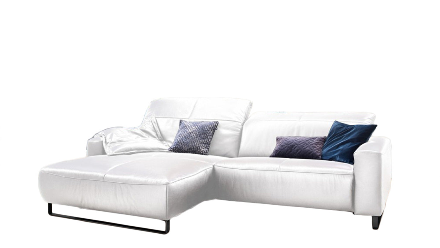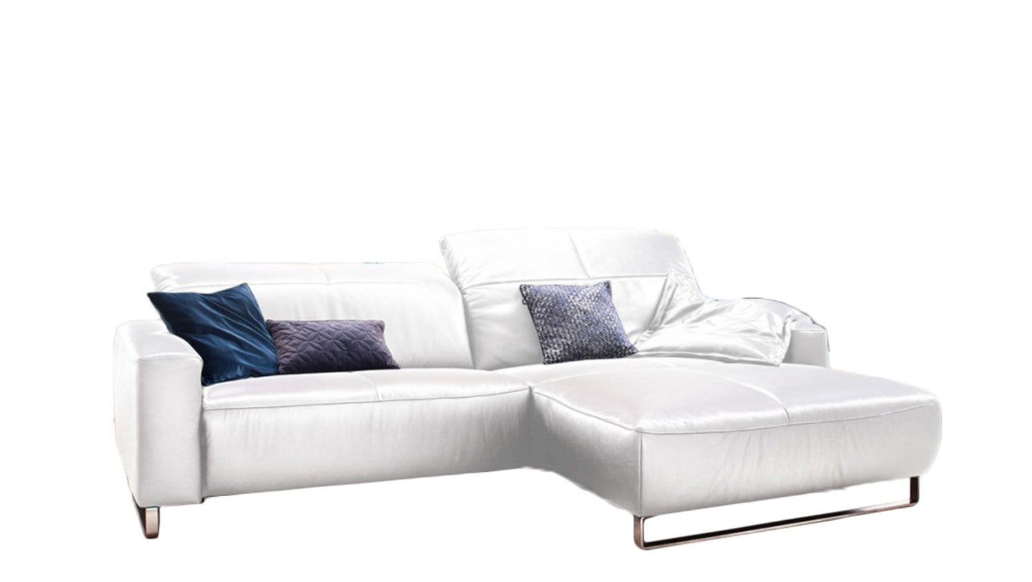 Die hier ausgewählte Bezugsfarbe Life-line white passt hervorragend zur Lederauswahl und zum Design des Ledersofas.