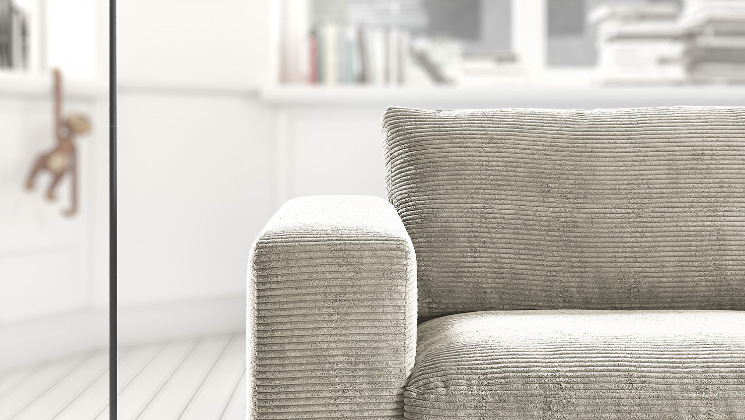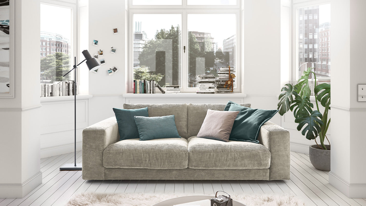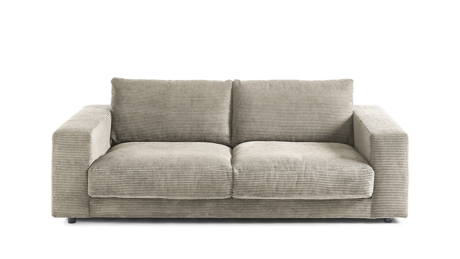 Das KAWOLA 2-Sitzer Sofa MADELINE besticht durch seinen hervorragenden Sitzkomfort, der durch die äußerst legere Polsterung zustande kommt und zum Verweilen und Entspannen einlädt. Die Polsterung passt sich der Körperform an; Sitzabdrücke sowie Wellenbildung der Bezüge sind warentypisch. Der Sitz besteht aus einer Unterfederung mit dauerelastischen Stahl-Wellenfedern und einer oberseitigen Abdeckung sowie losen Sitzkissen aus PUR-Schaum. Sitz und Rücken sind abgedeckt mit einem Inlett, welches befüllt ist mit hochwertigen Füllstoffen, die eine Beimischung von Federn enthalten. Der Bezug aus trendigem Cord-Stoff verleiht dem 2-Sitzer eine zeitlose Eleganz. Wenn Sie Ihrem Wohnzimmer einen außergewöhnlichen Anstrich verleihen wollen, ist das Sofa MADELINE definitiv das Richtige für Sie!