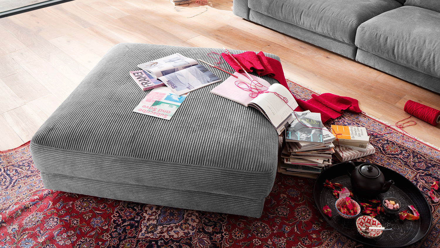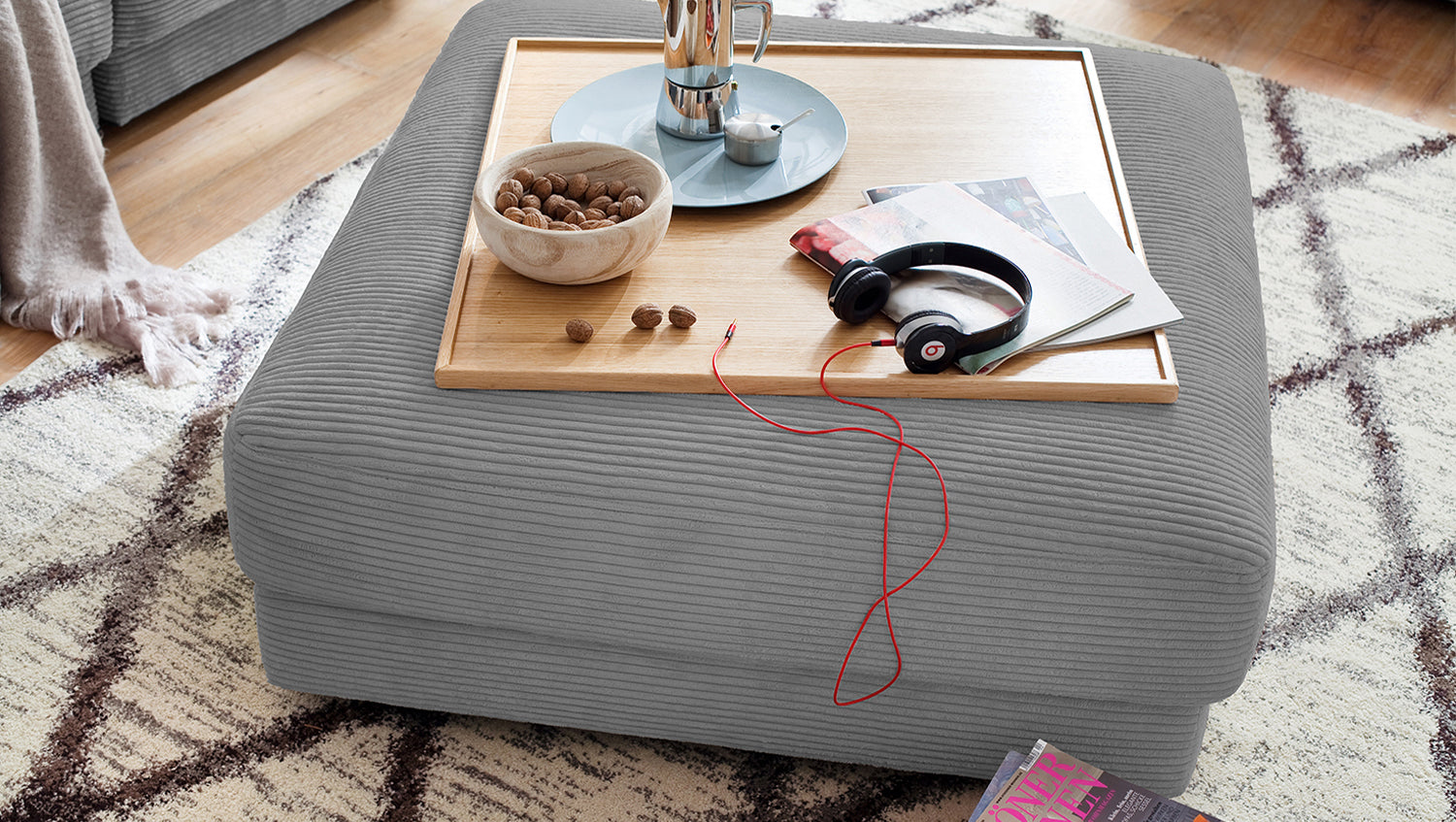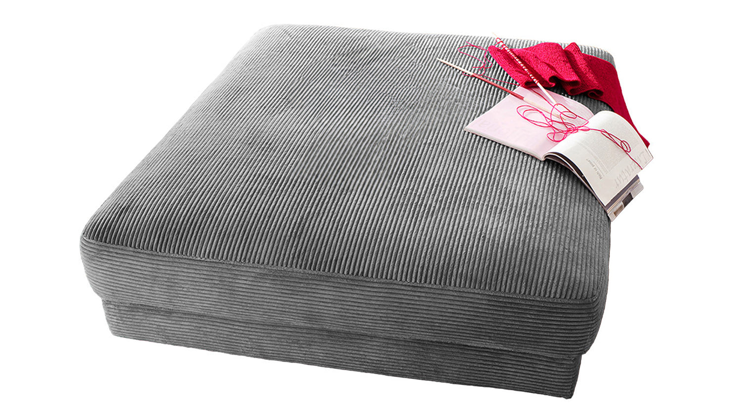 B-Ware KAWOLA Big Hocker MADELINE Polsterhocker Cord grau