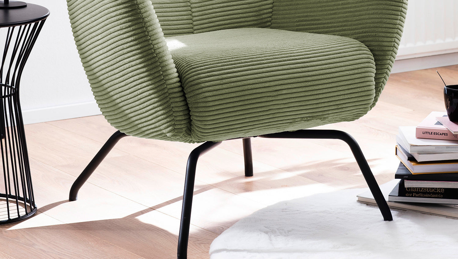 KAWOLA Sessel LOTTE Ohrensessel Cord olivgrün