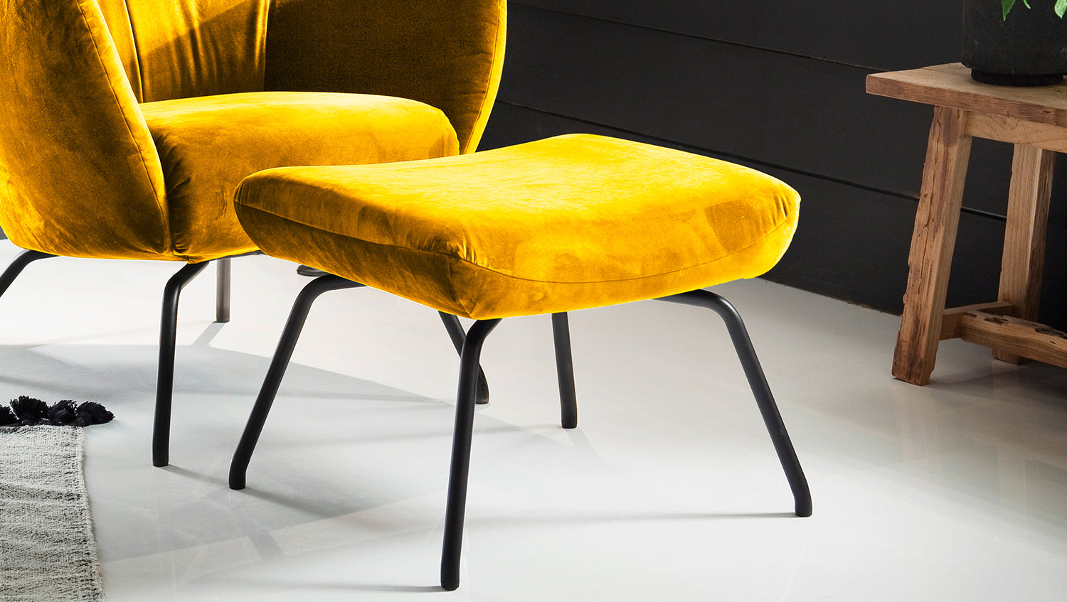 KAWOLA Sessel LOTTE Ohrensessel velvet curry mit Hocker
