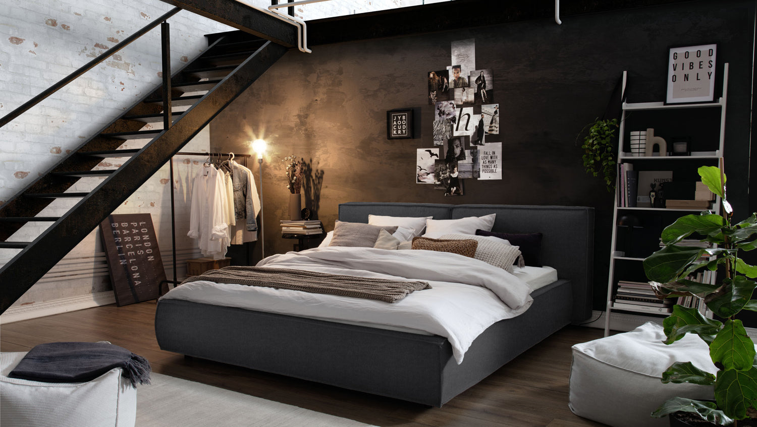 KAWOLA Bett CARLO Polsterbett Stoff dunkelgrau