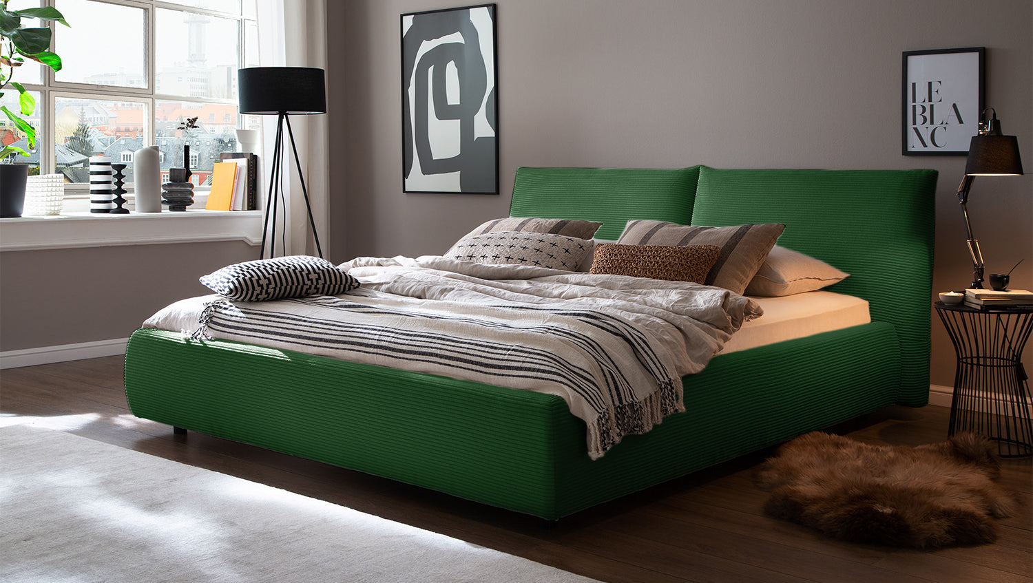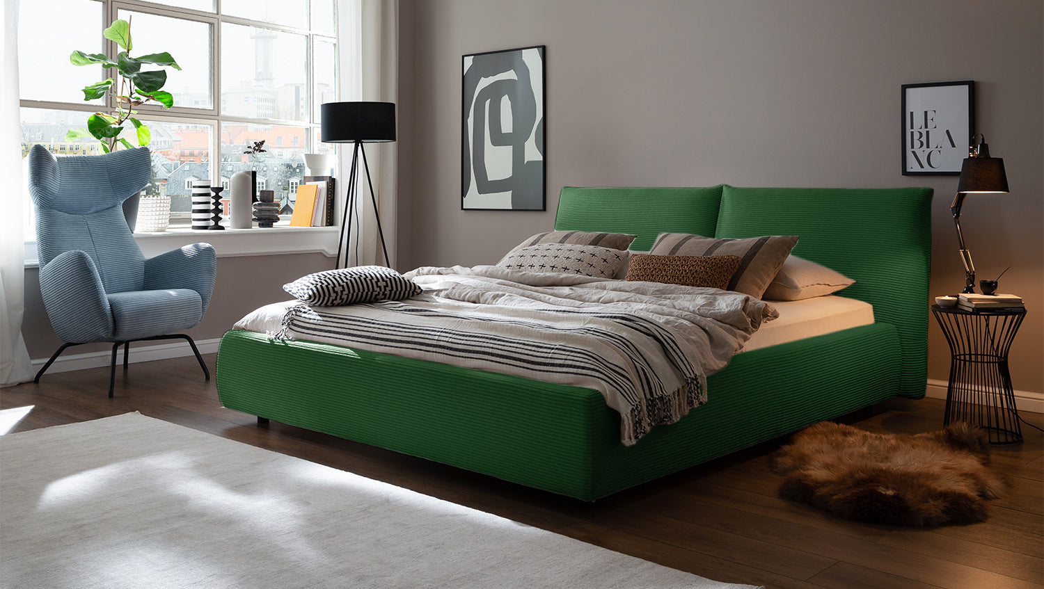 KAWOLA Bett HENRY Polsterbett Cord smaragd