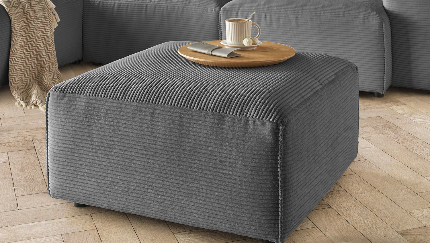KAWOLA Hocker RANI Polsterhocker Cord grau
