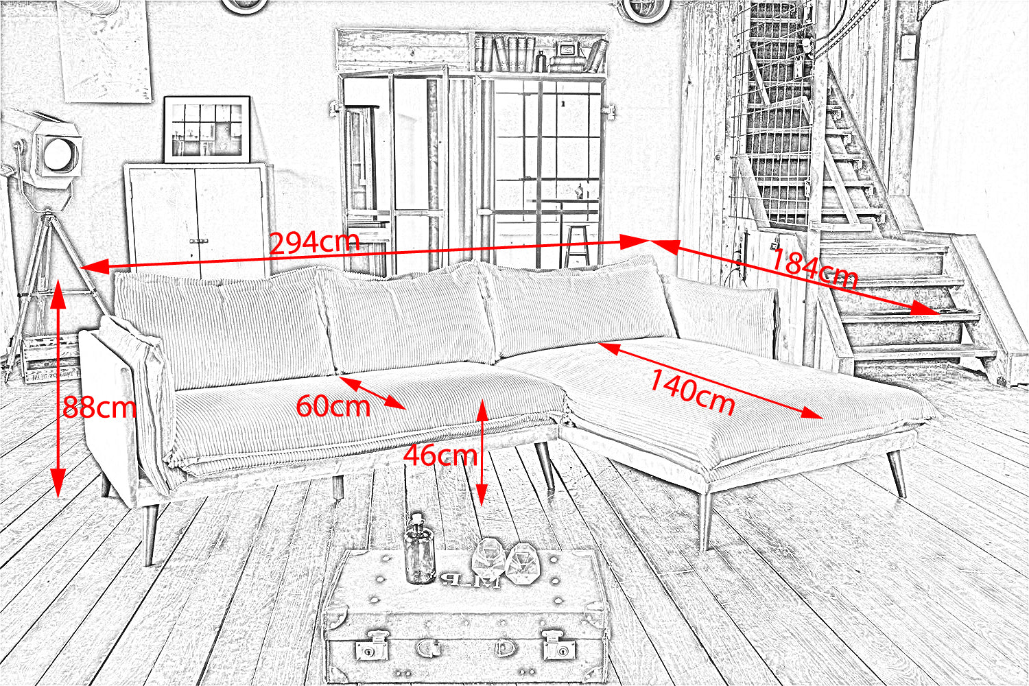 Das KAWOLA Ecksofa QUENYA verbindet moderne Designwelten mit klassischer Eleganz. Das Besondere: Mit seinen zwei verschiedenen Bezugsstoffen verfügt es über einen außergewöhnlichen Look, der sofort in Auge fällt. Sitzfläche sowie Rücken- und Seitenkissen sind in angesagten Cord gehüllt. Der Korpus wiederum sorgt mit seinem feinen Velvet-Bezug für einen sowohl optisch als auch haptisch reizvollen Kontrast, der durch die stylischen schwarzen Holzfüße noch verstärkt wird. Die angenehm weiche Polsterung garantiert außerdem höchsten Sitzkomfort. Das Sofa QUENYA macht überall eine gute Figur und ist eine echte Bereicherung für Ihr Zuhause!