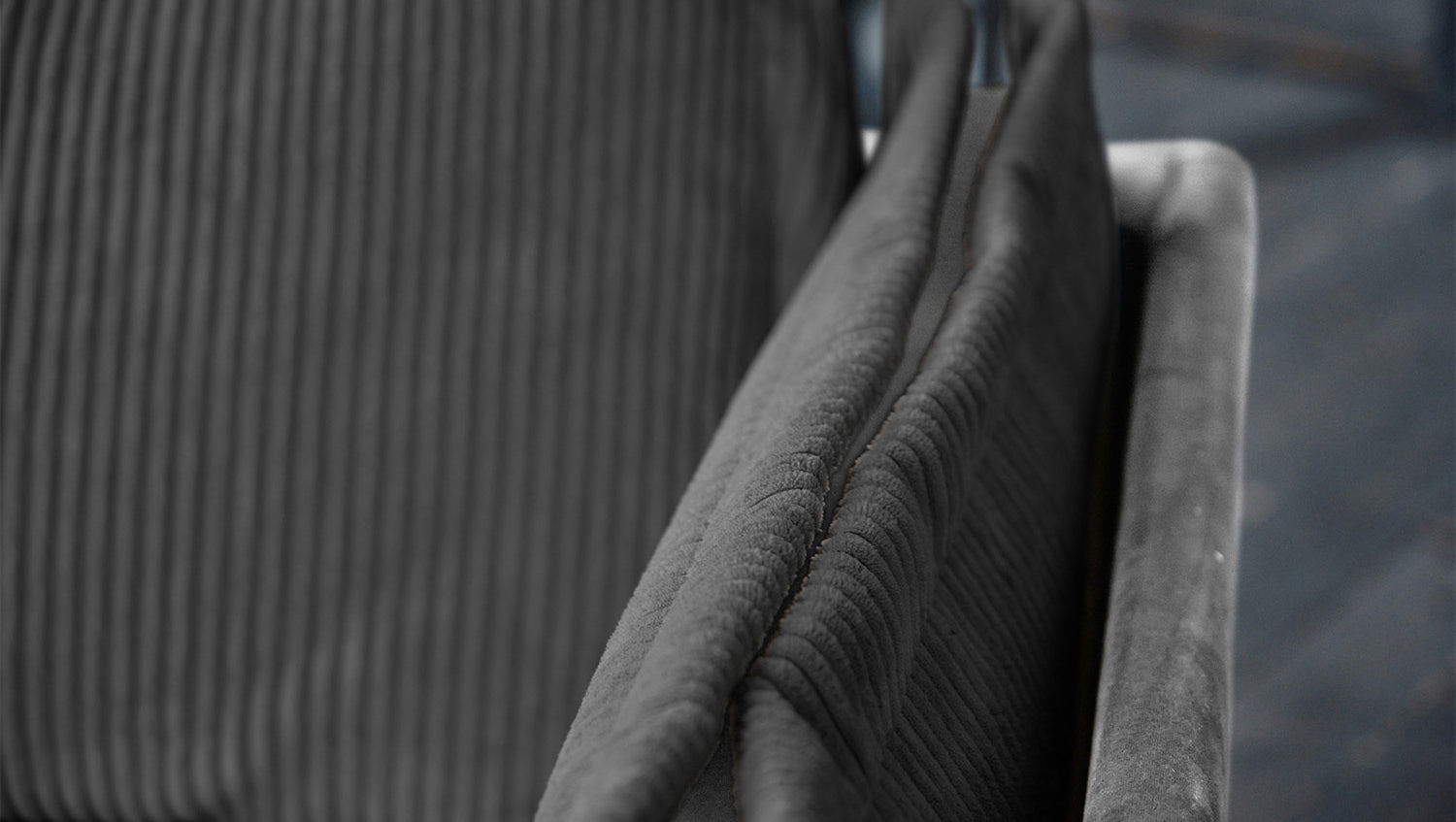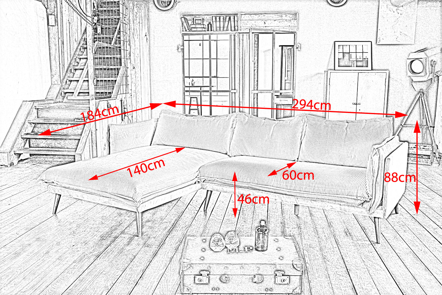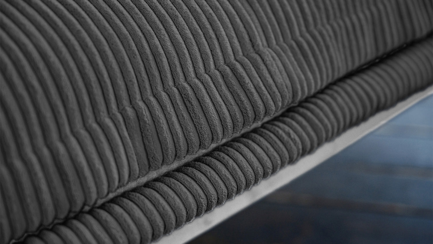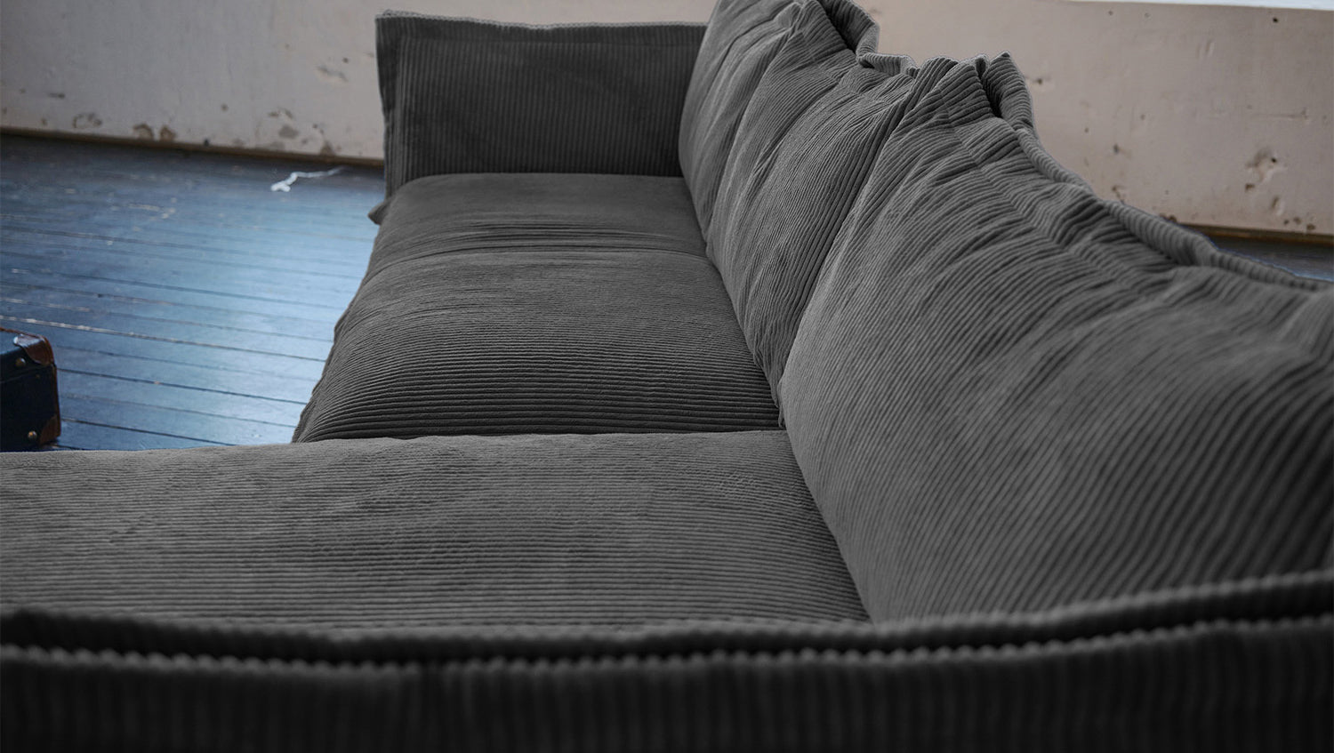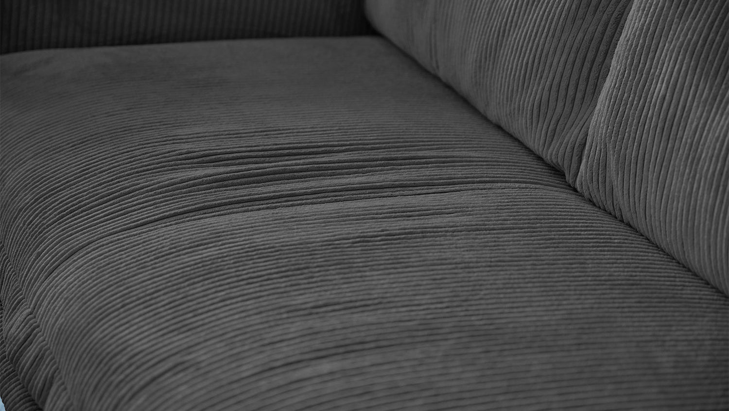 KAWOLA Sofa QUENYA Ecksofa Cord dunkelgrau / Velvet silber