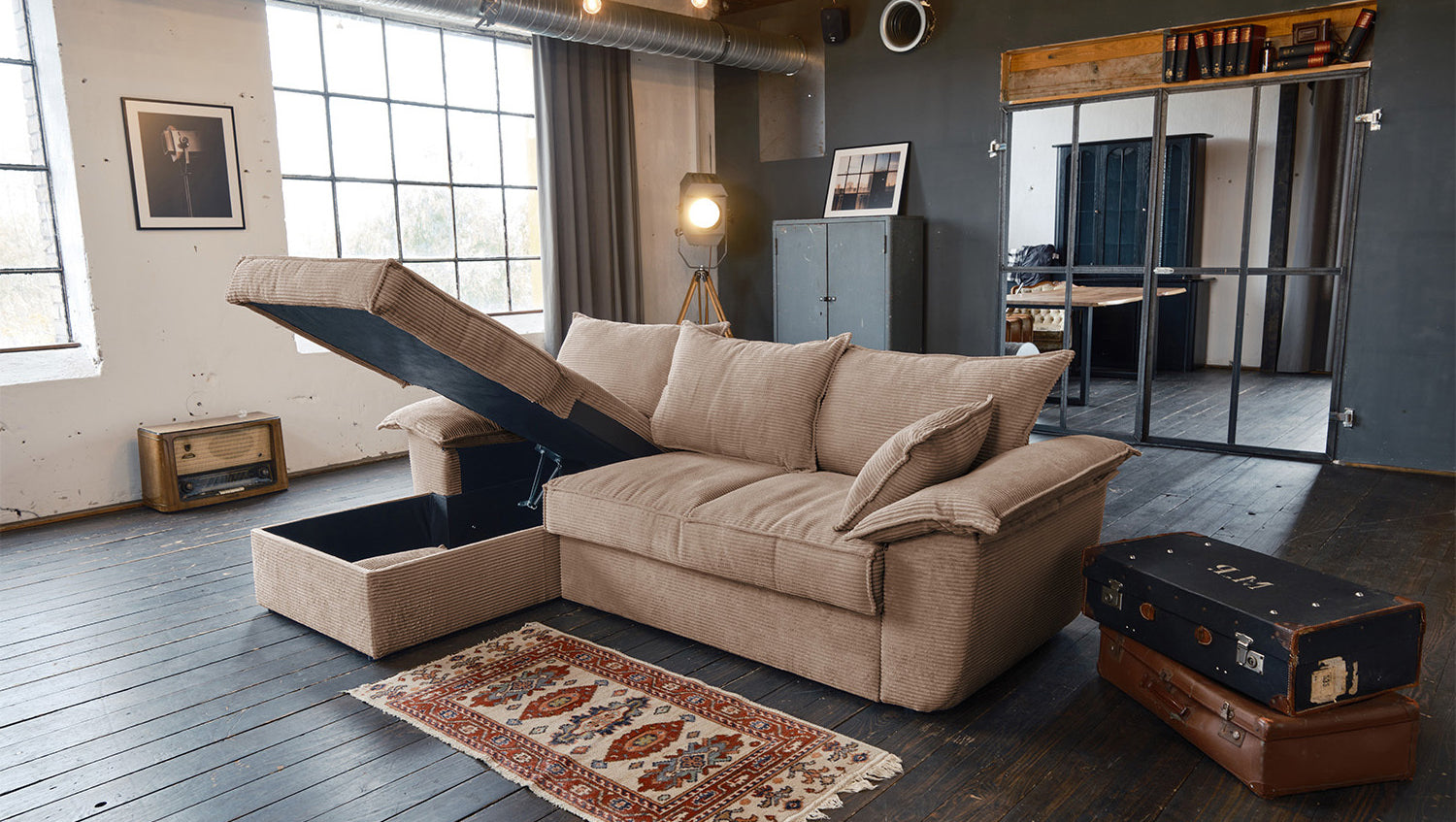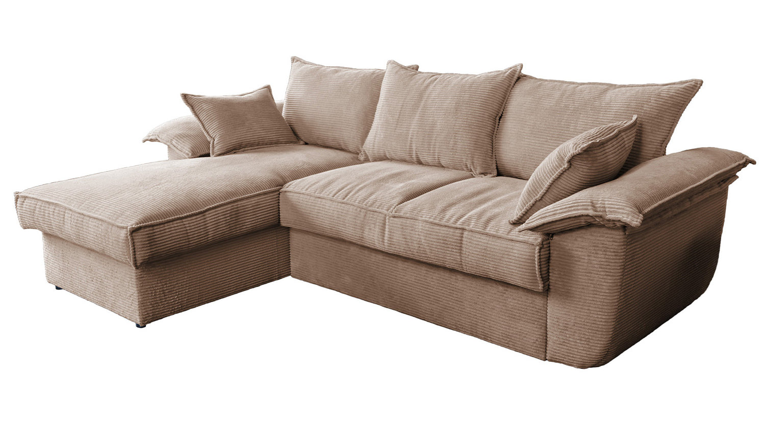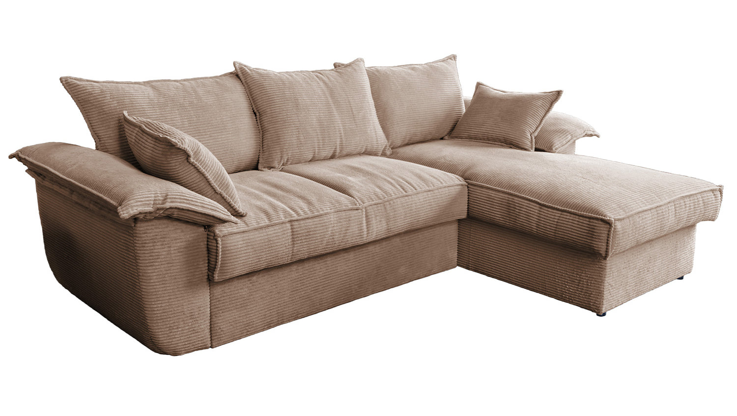 Das KAWOLA Sofa DAMETO ist das neue Allroundtalent in unserem Sortiment. Mit dem Bezug aus angesagtem Cord-Stoff ist es nicht nur ein echter Hingucker, seine angenehm weiche Polsterung sorgt auch für höchsten Sitzkomfort. Vor allem begeistert es aber mit seinen verschiedenen Zusatzfunktionen. Mit wenigen Handgriffen kann aus Ecksofa ein komfortables Schlafsofa gemacht werden - einfach den unteren Teil des 2-Sitzers nach vorne ziehen, anschließend nach oben klappen, fertig! Aber das ist noch nicht alles: Der Longchair verfügt über einen großzügigen Stauraum, der sich durch Hochklappen der Sitzfläche mühelos öffnen lässt. Außerdem ist der Longchair beidseitig montierbar und bietet Ihnen somit maximale Flexibilität für Ihre Wohnraumgestaltung. Egal, ob links oder rechts – passen Sie das Sofa ganz einfach an Ihre Raumverhältnisse an. Bequem, elegant, vielseitig und praktisch - das Sofa DAMETO wird ganz bestimmt der neue Star in Ihrem Wohnzimmer!