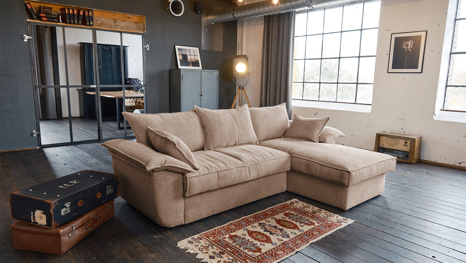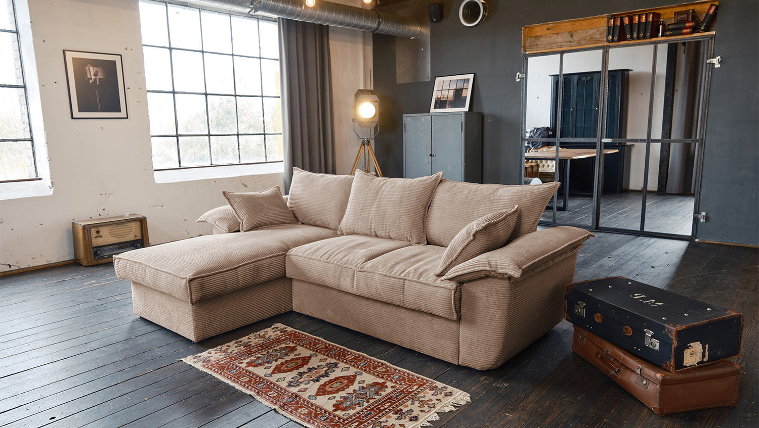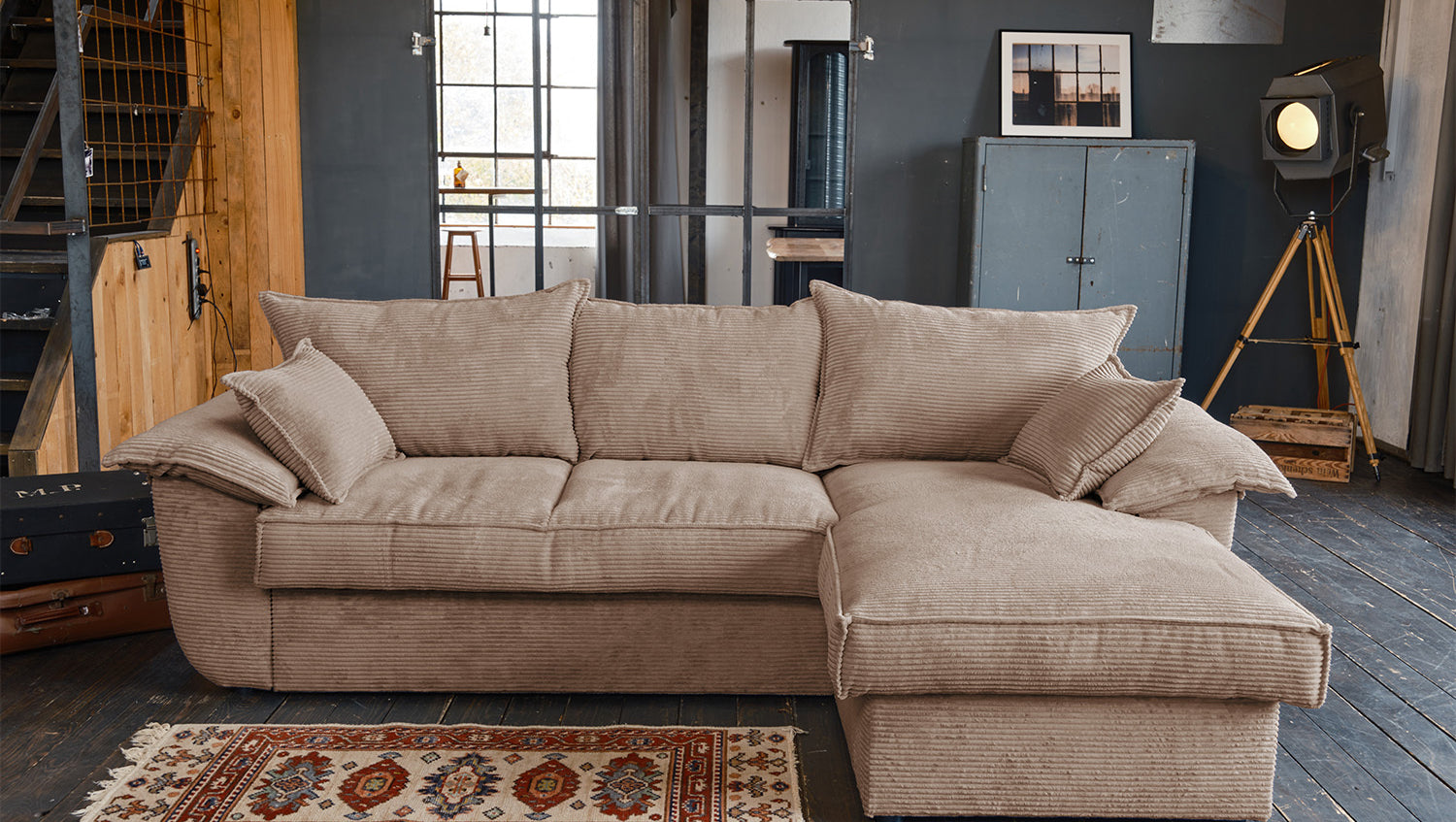 Das KAWOLA Sofa DAMETO ist das neue Allroundtalent in unserem Sortiment. Mit dem Bezug aus angesagtem Cord-Stoff ist es nicht nur ein echter Hingucker, seine angenehm weiche Polsterung sorgt auch für höchsten Sitzkomfort. Vor allem begeistert es aber mit seinen verschiedenen Zusatzfunktionen. Mit wenigen Handgriffen kann aus Ecksofa ein komfortables Schlafsofa gemacht werden - einfach den unteren Teil des 2-Sitzers nach vorne ziehen, anschließend nach oben klappen, fertig! Aber das ist noch nicht alles: Der Longchair verfügt über einen großzügigen Stauraum, der sich durch Hochklappen der Sitzfläche mühelos öffnen lässt. Außerdem ist der Longchair beidseitig montierbar und bietet Ihnen somit maximale Flexibilität für Ihre Wohnraumgestaltung. Egal, ob links oder rechts – passen Sie das Sofa ganz einfach an Ihre Raumverhältnisse an. Bequem, elegant, vielseitig und praktisch - das Sofa DAMETO wird ganz bestimmt der neue Star in Ihrem Wohnzimmer!