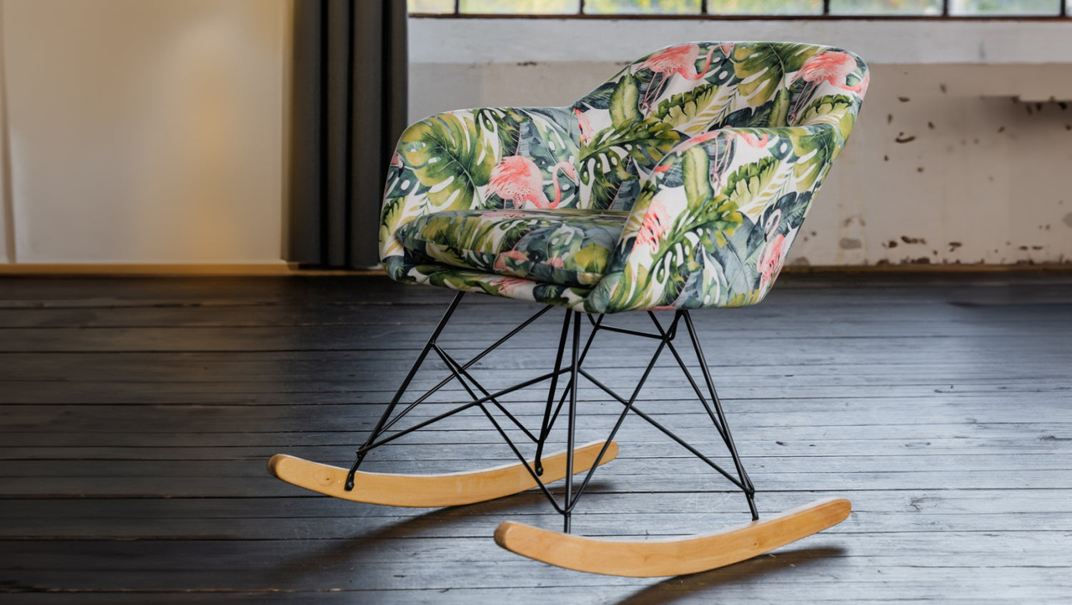 Lange Zeit wurde dem Schaukelstuhl keine Aufmersamkeit zu teil. Erst in der letzten Zeit wurde dieses Thema im Bereich der Möbel wieder neu aufgegriffen und neu interpretiert. Die Eigenschaften des herkömmlichen Schaukelsessels wurden beibehalten und das Äußere bekam ein neues Erscheinungsbild. So auch bei diesem tollen Schaukelstuhl Stella. Der Stuhl ist gemütlich, das Schaukeln wirkt entspannend und man fühlt sich zurückversetzt in die gute alte Zeit. Das Design des Stuhl Stella ist jedoch in der Moderne angekommen und lässt keine Wünsche offen; Der erhöhte Rücken bietet beim gemütlichen Sitzen viel Halt, die Armlehnen tragen zum Sitzkomfort bei und die Form des Schaukelsessels ist gradlinig und klassisch gehalten. Die angenehme Polsterung des Schaukelstuhl wurde überzogen mit einem strapazierfähigen und langlebigen Polyester. Das Gestell des Stuhl wurde aus Metall gefertigt und ist sehr robust und stabil. In einer schönen Ergänzung zum dem flamingofarbenen Stoff und dem dunklen Metall wurden die Kufen aus Eiche gefertigt. In diesem Schaukelsessel fühlt sich die ganze Familie wohl!