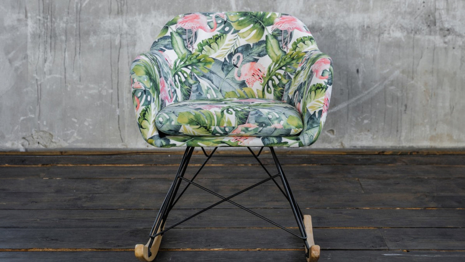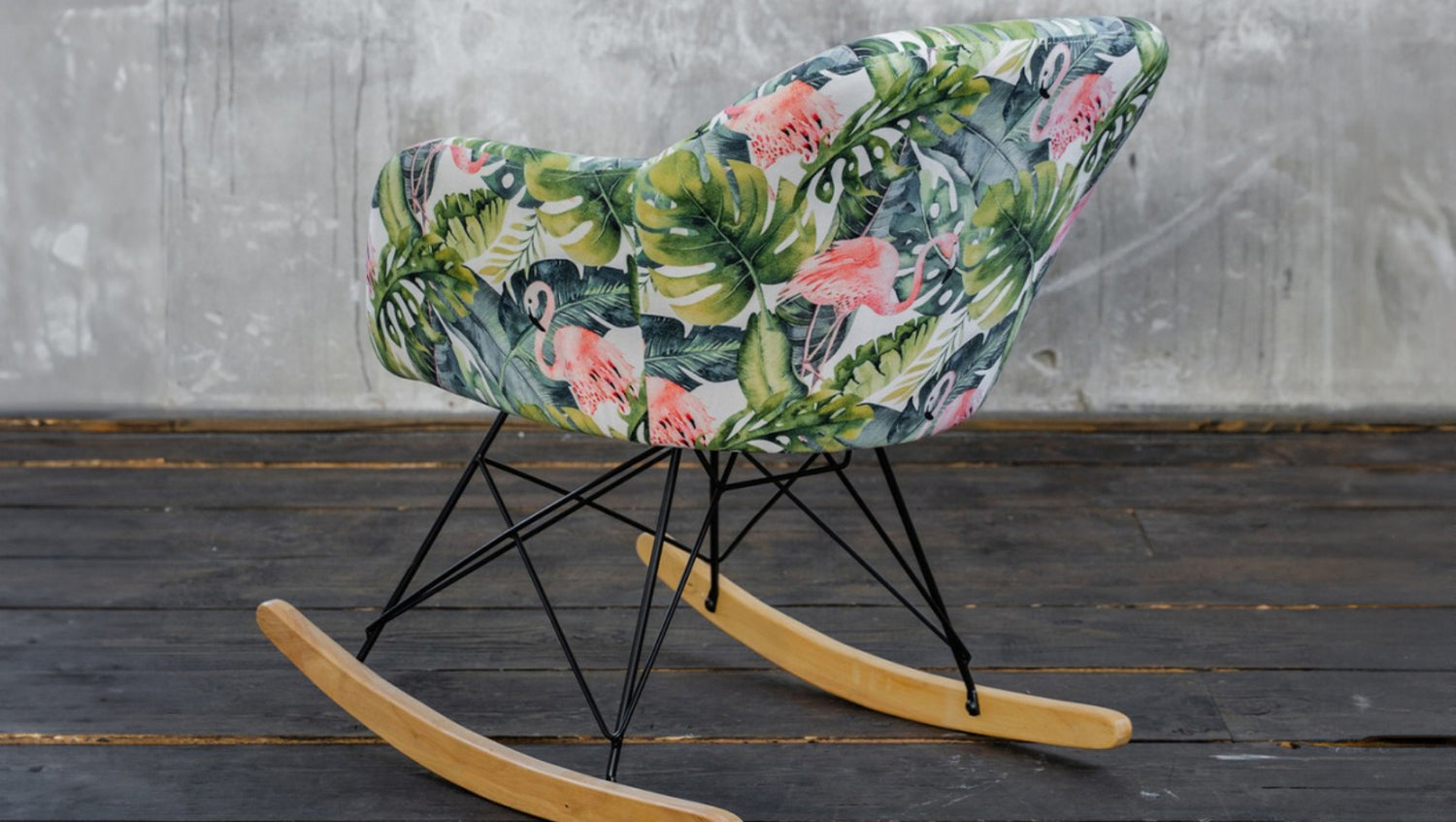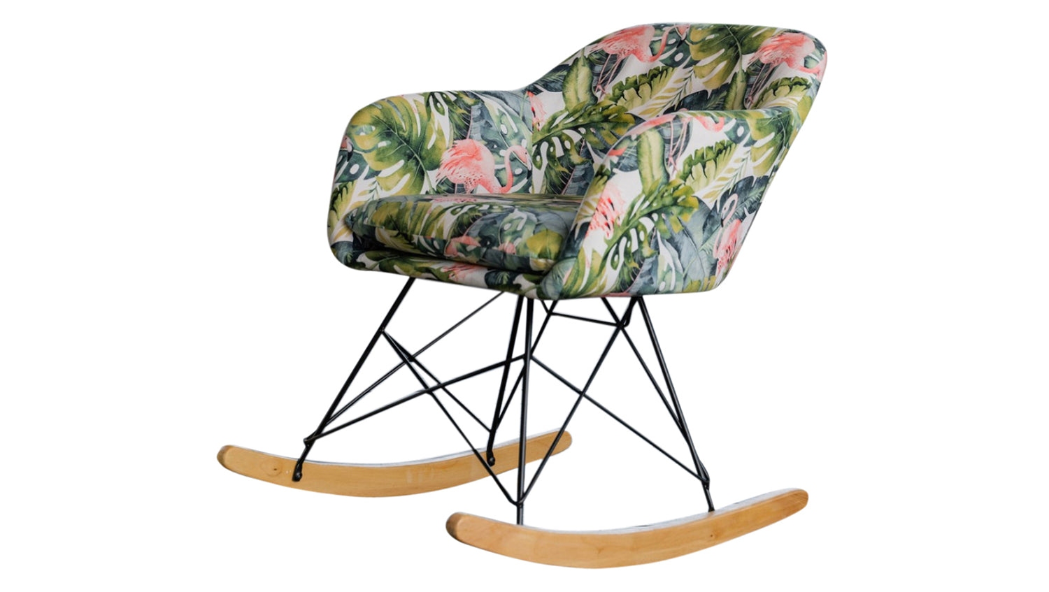 KAWOLA Schaukelstuhl Stella Schaukelsessel Esszimmerstuhl Stoff Flamingo