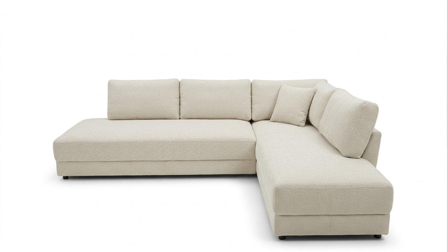 Die großzügige Eckform bietet reichlich Platz zum Entspannen und macht SADIRA zum idealen Möbelstück für Wohn- und Gästezimmer. Die integrierte Schlaffunktion ermöglicht es, das Sofa schnell und unkompliziert in eine komfortable Liegefläche zu verwandeln. Dank der gleichmäßigen Polsterung eignet sich SADIRA sowohl als gemütliches Sitzmöbel im Alltag als auch als vollwertiges Gästebett.