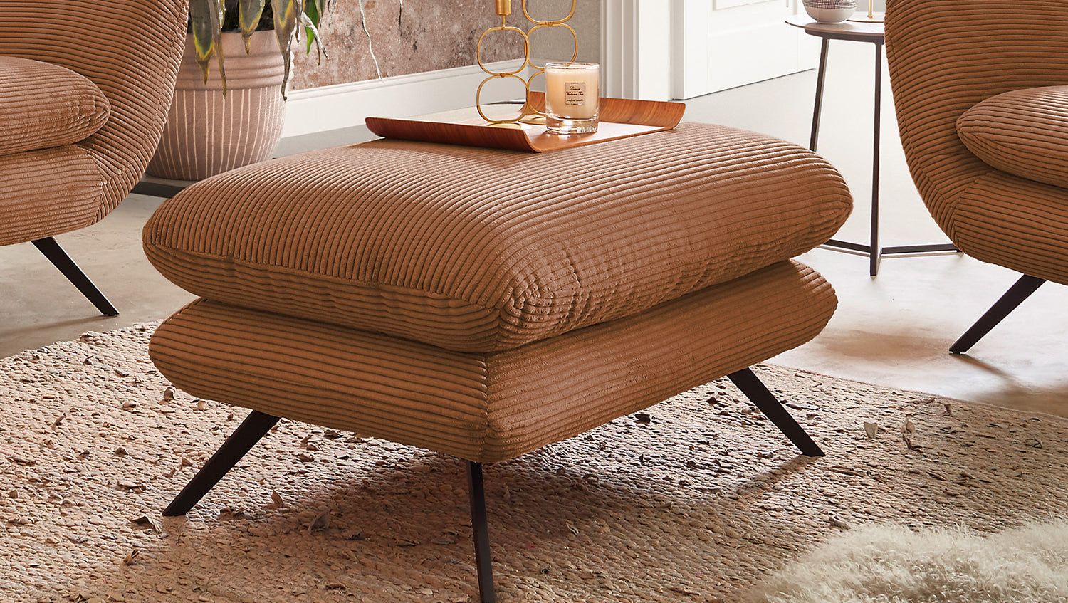 Der KAWOLA Sessel CHARME ist ein ganz besonderer Sessel und setzt als wahres Designerstück neue Akzente im Wohnraum. Der Stil des Sessel CHARME erinnert an die sechziger Jahre: Der Rücken wurde aufwendig abgesteppt ohne Knöpfe; die Rückenlehne wurde an den beiden Seiten leicht nach vorne gewölbt und erinnert an die Form eines Ohrensessels; die Füße aus pulverbeschichtetem Metall sind leicht ausgestellt. Zu der ausgefallenen Form des Sessel CHARME wurde der Bezug hier in Cord gewählt und erscheint leicht samtig. Die Polsterung des KAWOLA CHARME besteht aus PUR-Schaum und besticht durch ihren weichen und legeren Sitzkomfort. Selbstverständlich wurde der Sessel komplett mit dem Cord Stoff überzogen, sodass dieser tolle Sessel auch frei in den Raum gestellt werden kann. Wer nicht nur einen Sessel sucht, sondern ein ganz besonderes Highlight, der liegt mit dem KAWOLA Sessel CHARME goldrichtig!