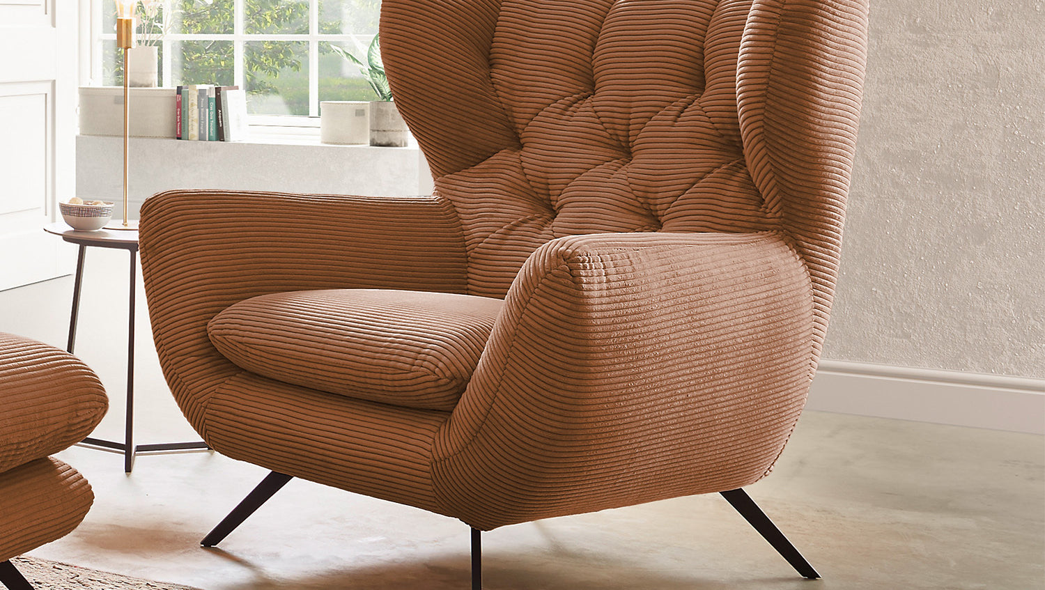 KAWOLA Sessel CHARME Hochlehnsessel Cord rost