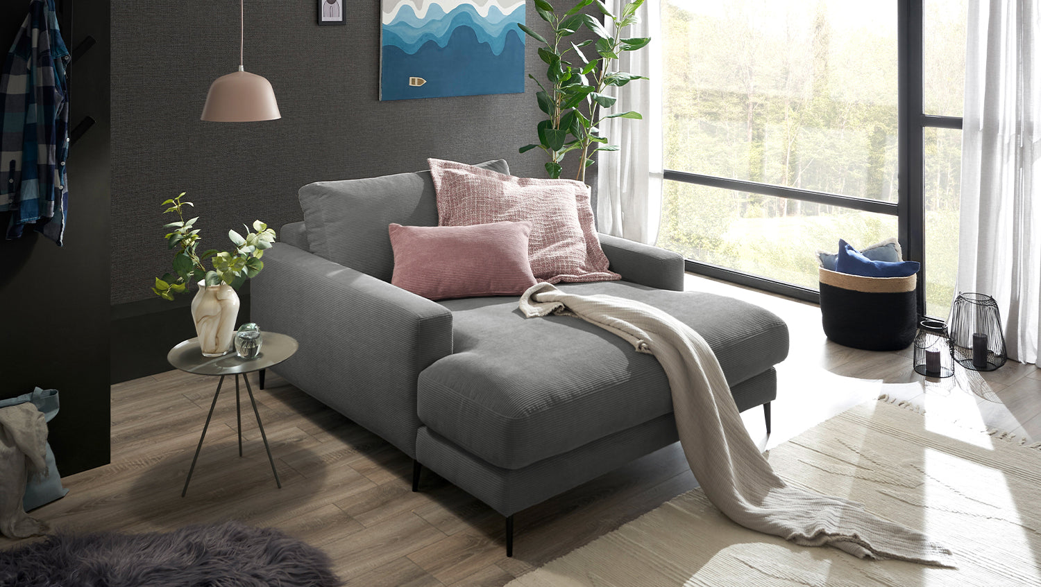 Der KAWOLA Longseat CARA verbindet klassisches Design mit moderner Sachlichkeit und fügt sich nahtlos in jedes Interieur ein. Seine weichen Formen und der Bezug aus angesagtem Feincord verleihen dem Longseat eine zeitlose Eleganz. Die Polsterung passt sich der Körperform an; Sitzabdrücke sowie Wellenbildung der Bezüge sind warentypisch. Der Sitz besteht aus einer Unterfederung mit dauerelastischen Stahl-Wellenfedern und einer oberseitigen Abdeckung sowie losen Sitzkissen aus PUR-Schaum. Sitz und Rücken sind abgedeckt mit einem Inlett, welches befüllt ist mit hochwertigen Füllstoffen, die eine Beimischung von Federn enthalten. Um ein Stauchen des Füllmaterials zu verhindern, sollten die Rückenkissen nach Gebrauch aufgeschüttelt werden. Egal zu welcher Gelegenheit - auf dem Longseat CARA findet jeder ein Plätzchen zum Entspannen!
