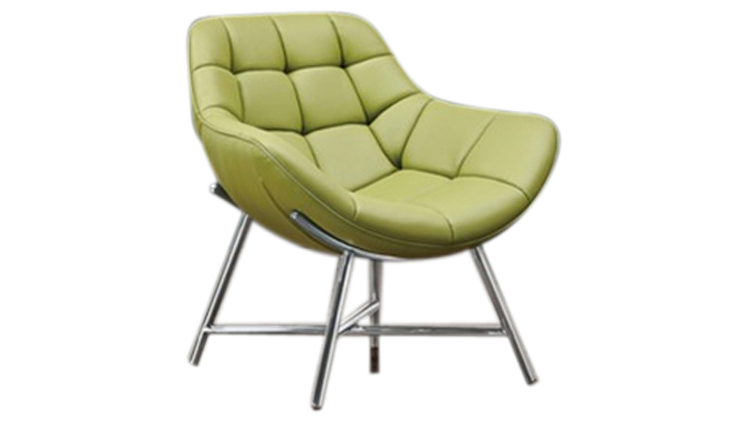 Der frische Look des Polstersessels fügt sich durch das elegante Metallgestell, den hochwertigen Kunstlederbezug in grün und die mit Knöpfen versehenen Absteppungen im Sitzpolster zusammen.