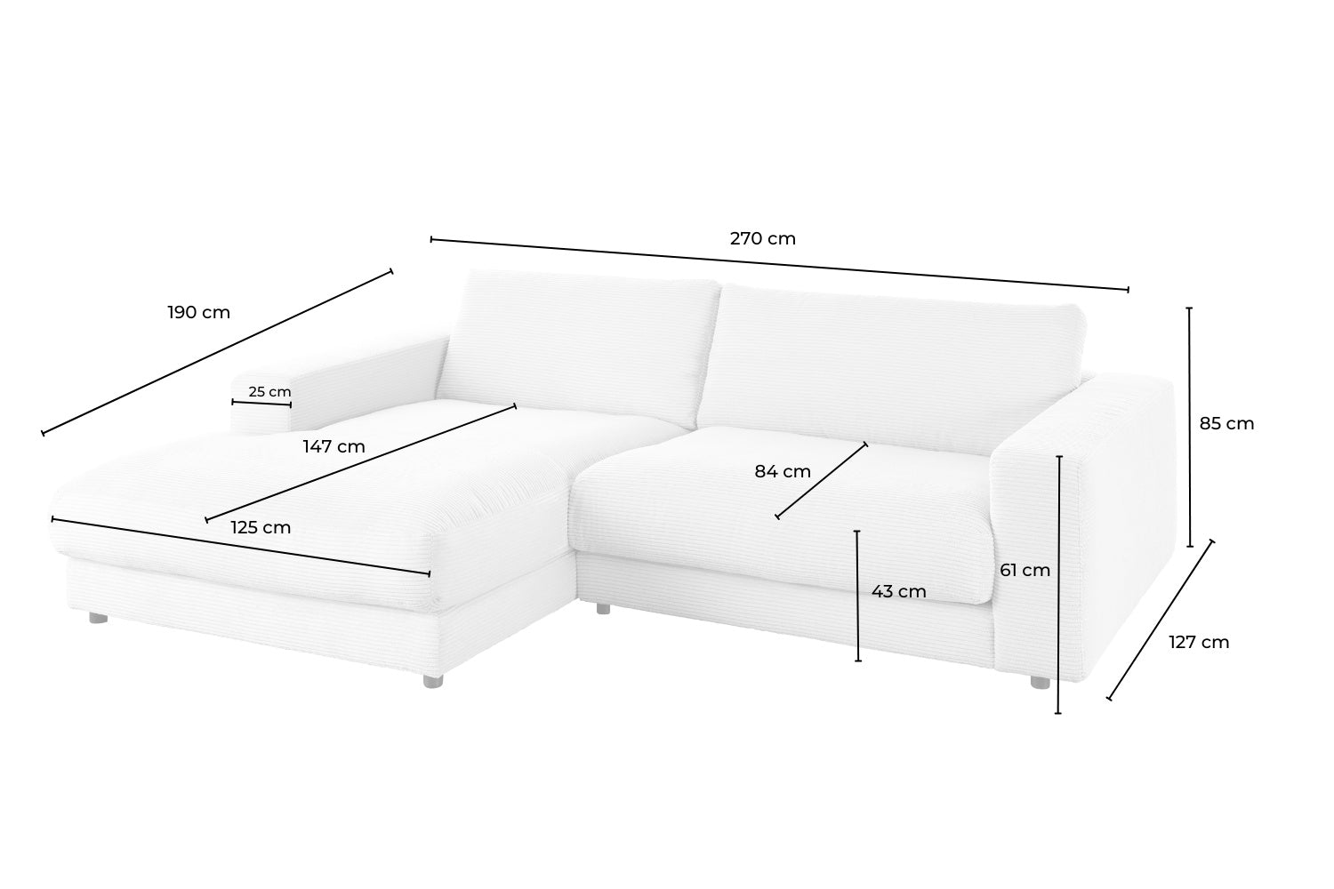 • Sitz und Rücken: abgedeckt mit Inlett, das befüllt ist mit hochwertigen Füllstoffen, die eine Beimischung von Federn enthalten