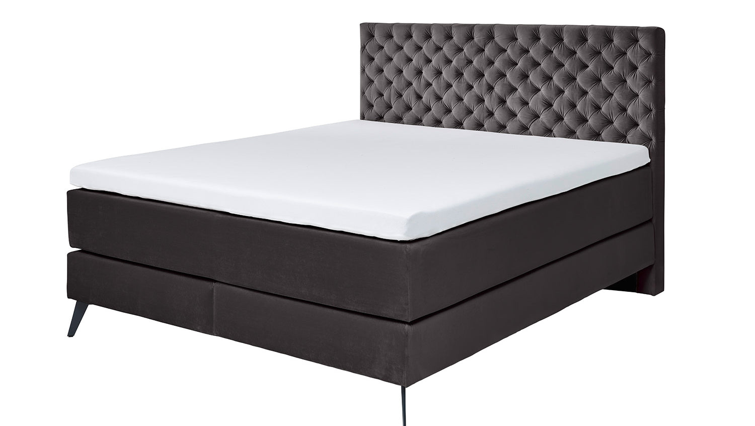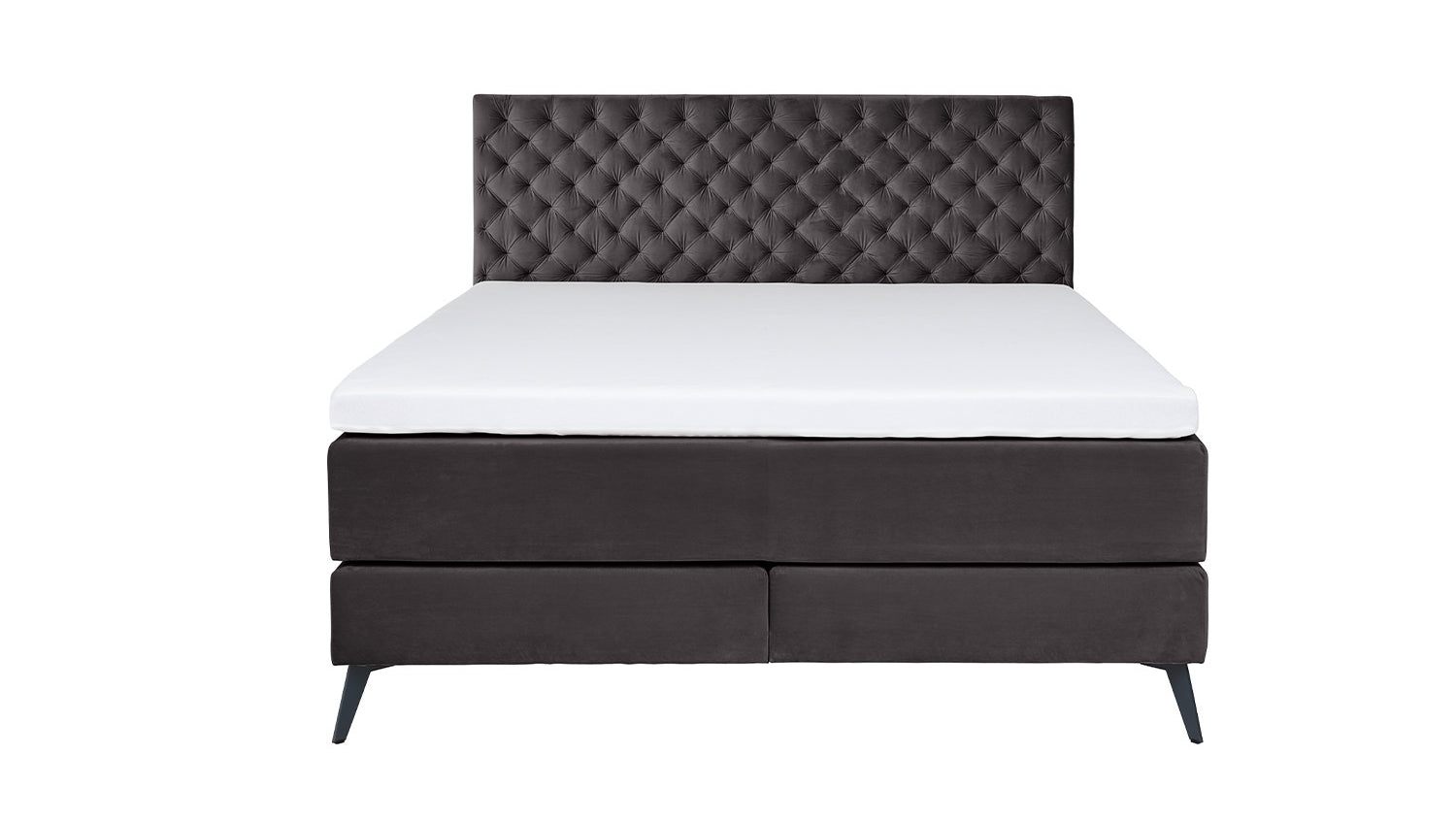 KAWOLA Bett SINDAR Boxspringbett Stoff anthrazit Fuß schwarz ohne Topper 160x200cm