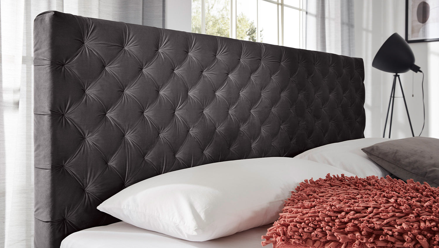 Das KAWOLA Boxspringbett SINDAR ist eine echte Bereicherung für jedes Schlafzimmer. Der Boxspring befindet sich auf einem hochwertigen Rahmen aus Massivholz und besteht aus einem Bonnell-Federkern. Die 7-Zonen-Tonnentaschenfederkern-Matratze darüber überzeugt mit einer optimalen Körperanpassungsfähigkeit sowie hervorragender Punktelastizität. Dafür sorgen sensible Federn, die einzeln in Taschen eingenäht sind. Den Härtegrad der Matratze können Sie durch einfaches Wenden individuell anpassen: Eine Seite verfügt über den Härtegrad H2, die andere Seite über H3. Die klassische Chesterfield-Steppung am Kopfteil verleiht dem Bett eine zeitlose Eleganz. Das KAWOLA Bett SINDAR macht überall eine gute Figur.