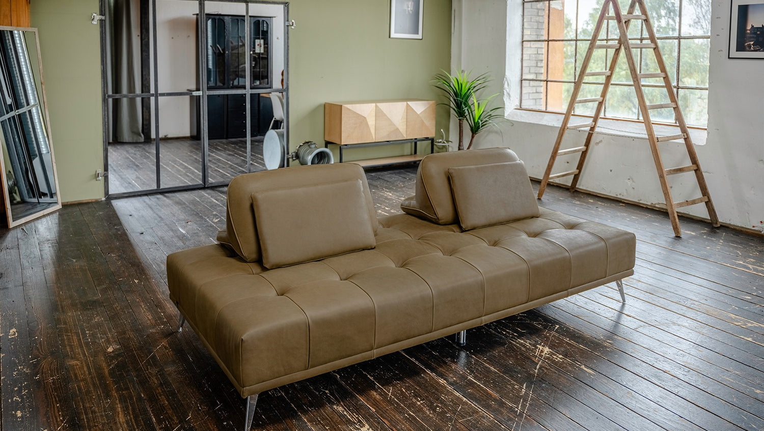 Elegante Absteppungen in der Sitzfläche, hochwertiger Lederbezug und filigrane Füße aus Metall, das alles zeichnet das Sofa WIOLO von KAWOLA aus. Doch das Möbelstück ist nicht nur optisch reizvoll! Denn das Schlafsofa WIOLO bietet verschiedene Nutzungsoptionen: Zum einen kann es als elegantes 2,5-Sitzer Sofa genutzt werden. Der Clou hierbei ist: Die Rückenkissen können nach Wunsch individuell verteilt und verschoben werden. So können Sie die für Sie komfortabelste Sitz- beziehungsweise Liegeposition einnehmen. Zum anderen kann das Sofa durch das Entfernen der Rückenpolster auch als Schlafsofa genutzt werden. Egal wo, egal wie, das Schlafsofa WIOLO verleiht jedem Raum Eleganz und Komfort.