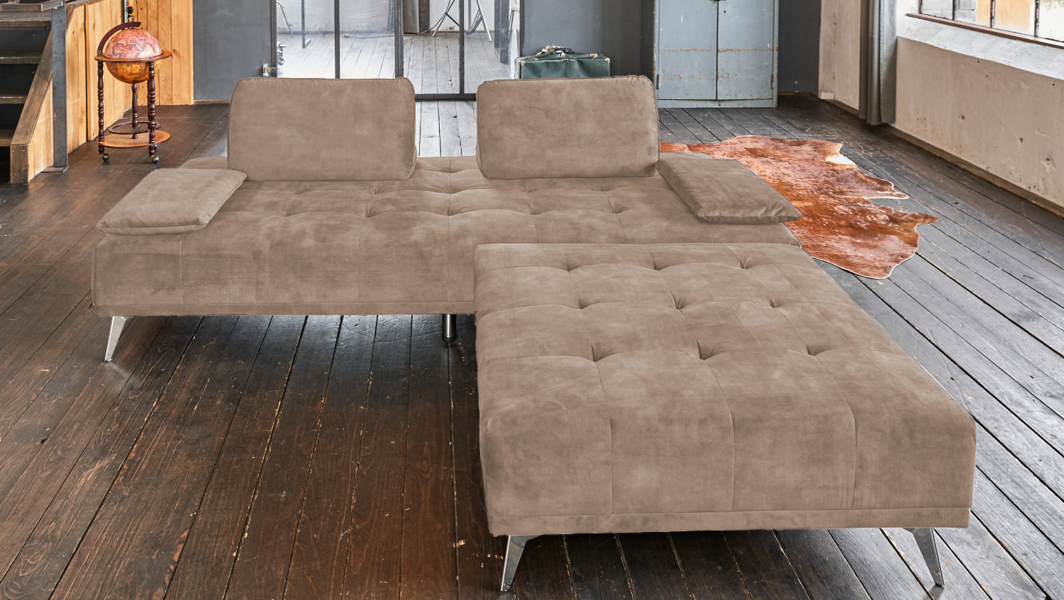 KAWOLA Sofa WIOLO Schlafsofa Daybed mit Hocker velvet taupe