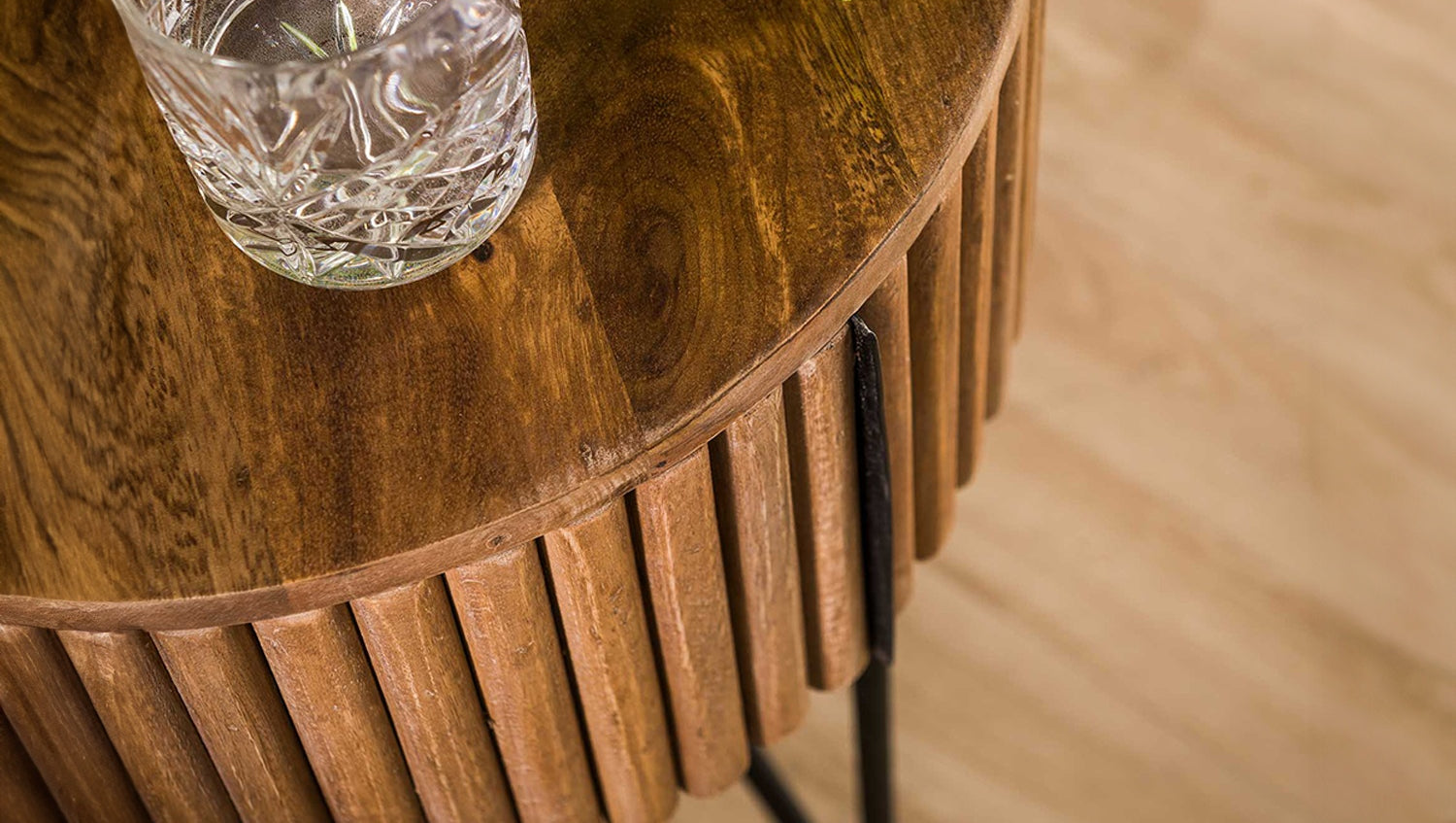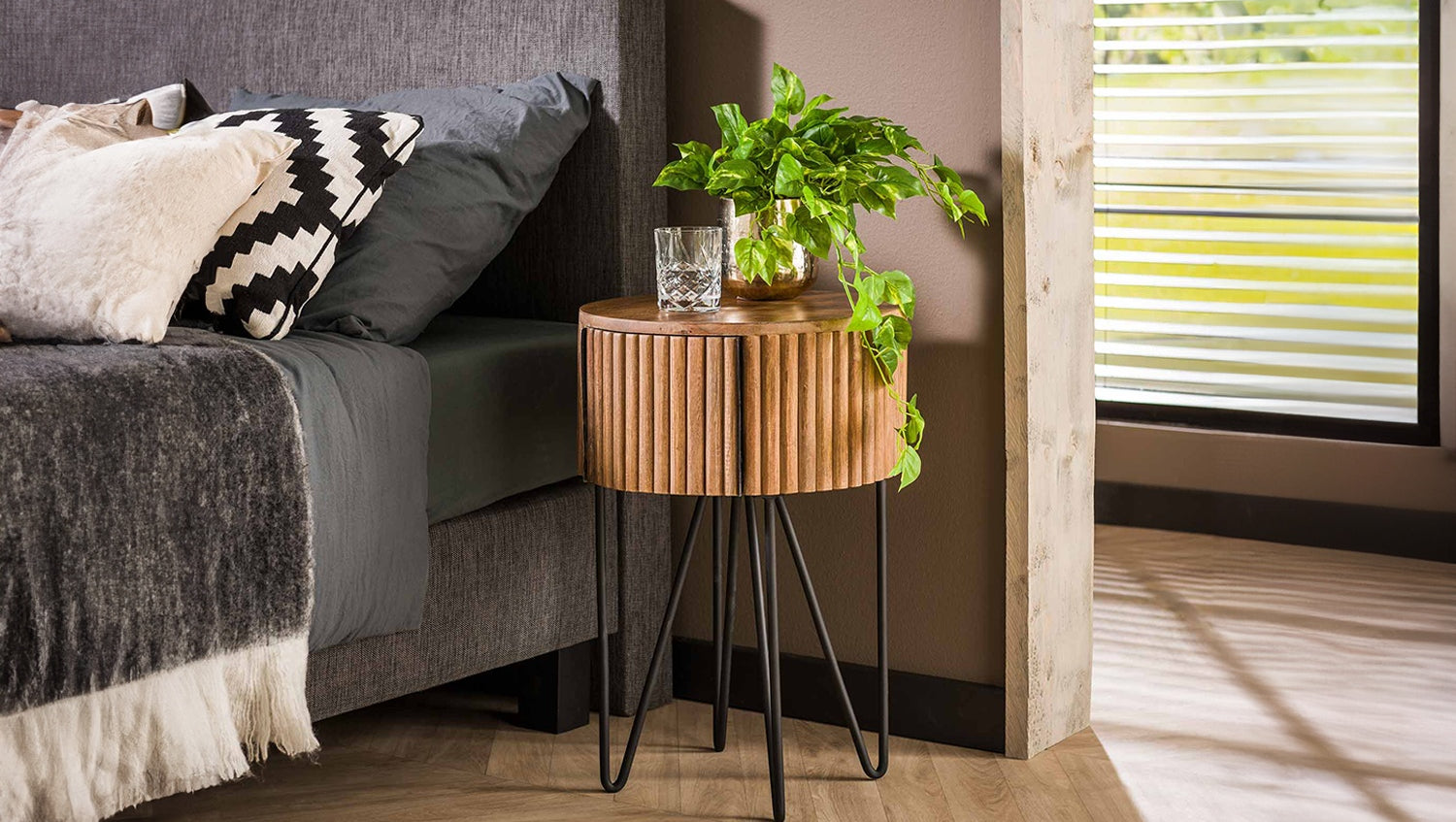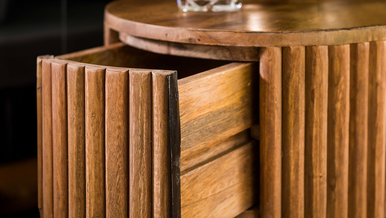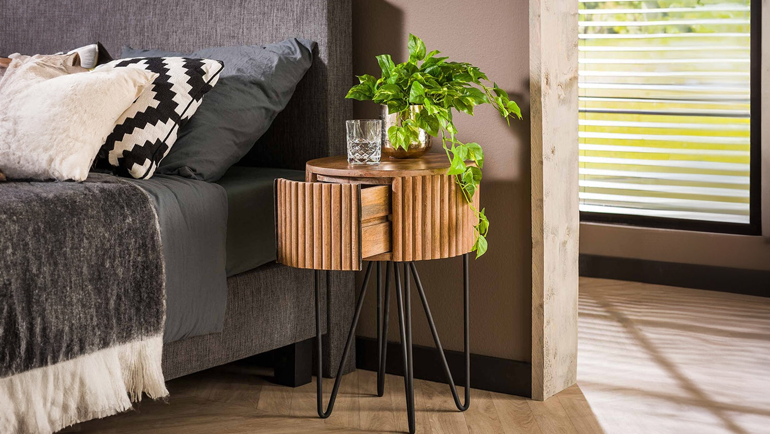 Der KAWOLA Nachttisch SWEAK überzeugt mit natürlicher Ausstrahlung und funktionalem Design. Gefertigt aus hochwertigem Mangoholz mit sandfarbenem Finish und einem Metallrahmen, bringt er Wärme und Stil in jedes Schlafzimmer. Die Nachtkonsole bietet eine praktische Ablagefläche für Bücher, Deko oder persönliche Gegenstände. Mit einem Durchmesser von 40 cm und einer Höhe von 60 cm ist der Tisch ideal für moderne Einrichtungen, in denen Funktionalität und Ästhetik gefragt sind. Ob als stilvoller Nachttisch oder als Beistelltisch im Wohnbereich – SWEAK ist vielseitig einsetzbar und ein echter Blickfang.