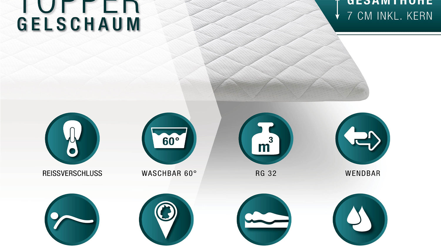 Der KAWOLA Topper SOLO aus Gel-Schaum auf Comfortschaum-Basis ist ein hochwertiger, durchgängiger Sence-ice-Topper mit klimaregulierendem und hautsympathischem Bezug. Eine Seite ist kühlend, eine Seite ist wärmend. Der feuchtigkeitsregulierende und somit transpirationsmindernde Bezug ist waschbar bei 60 C° und nicht für den Trockner geeignet.
