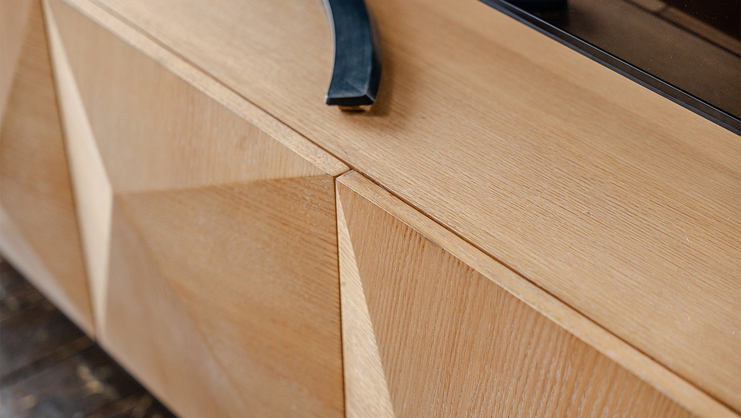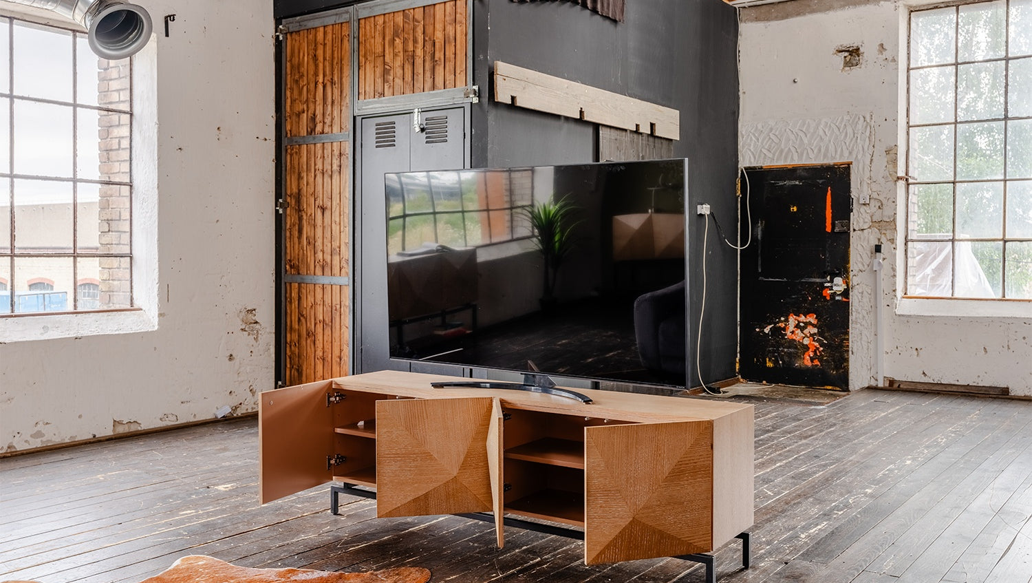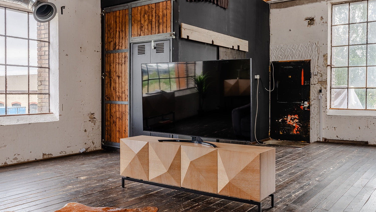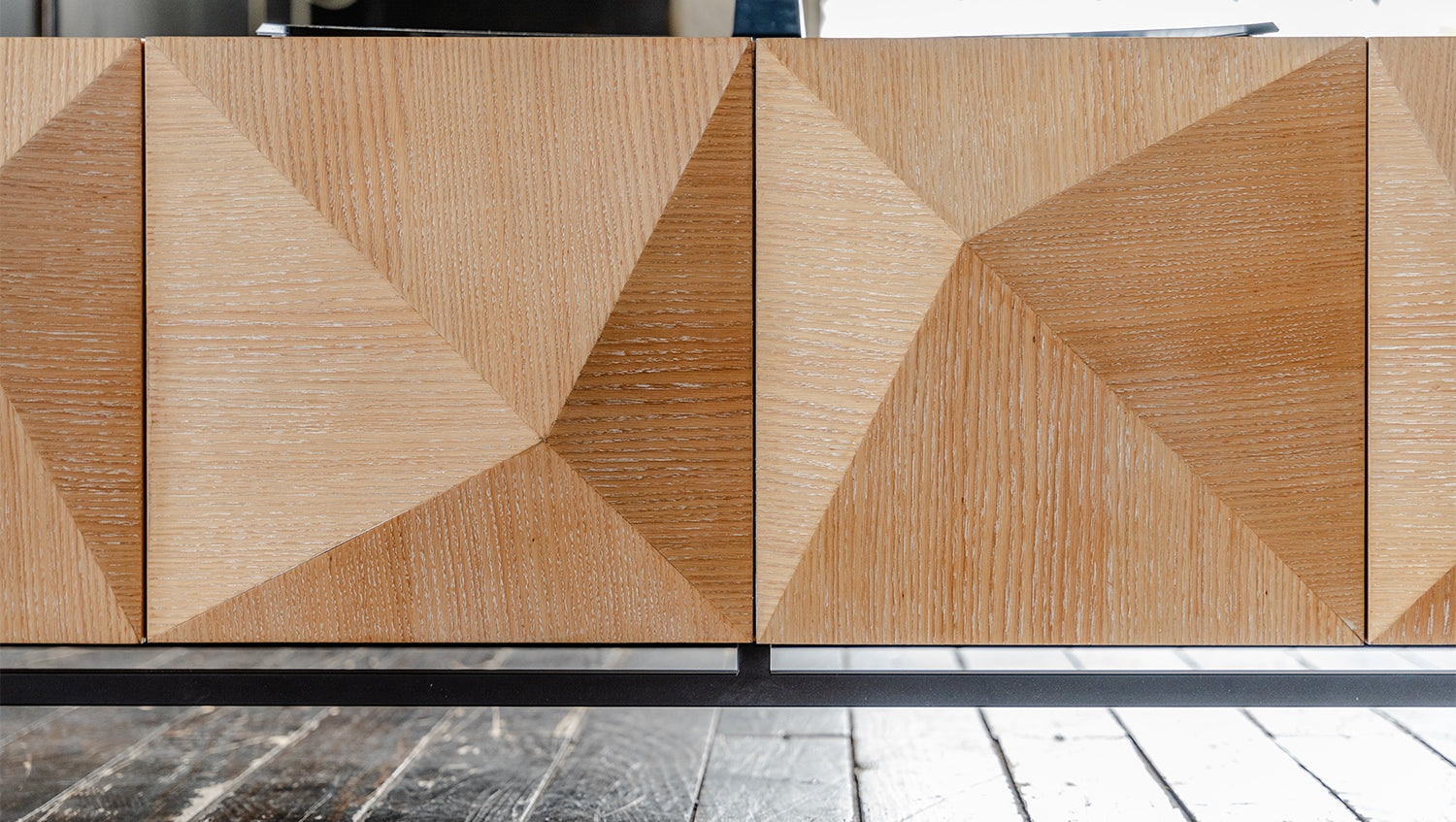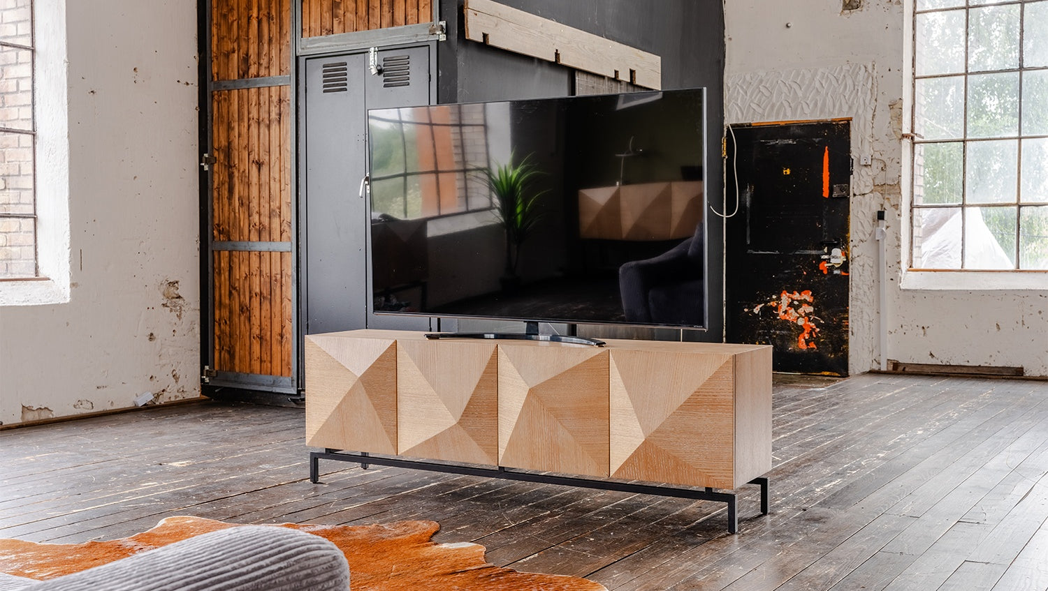 Das KAWOLA Lowboard ANJO besticht durch seine elegante Kombination aus modernem Design und praktischer Funktionalität. Mit seiner Breite von 180 cm ist es der ideale Platz für Ihren Fernseher. Der Korpus und die Türen sind stilvoll mit hochwertigem Eichenholz furniert, das dem Möbelstück eine luxuriöse Optik verleiht. Die vier Türen bieten großzügigen Stauraum und lassen sich dank des komfortablen Push-to-Open-Mechanismus mühelos öffnen. Die schwarzen Füße aus pulverbeschichtetem Eisen sorgen für einen modernen, zeitlosen Look und bieten gleichzeitig stabile Standfestigkeit. Das Lowboard ANJO von KAWOLA fügt sich perfekt in jedes Wohnambiente ein und ist ideal für Liebhaber von ausgefallenen, aber dennoch eleganten Möbelstücken. Entdecken Sie die perfekte Kombination aus Design und Funktionalität mit dem Lowboard ANJO!