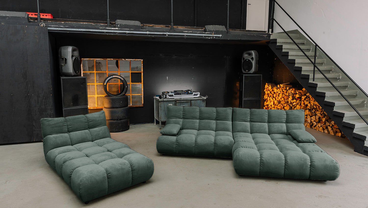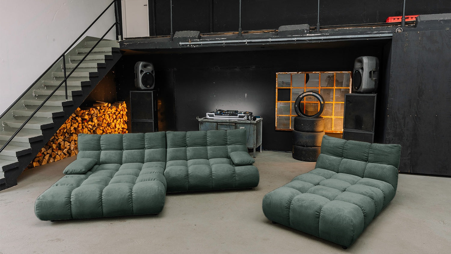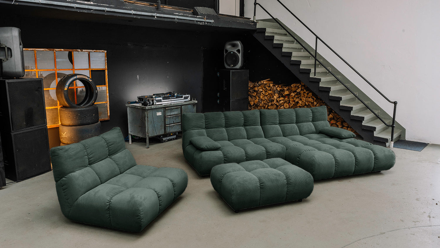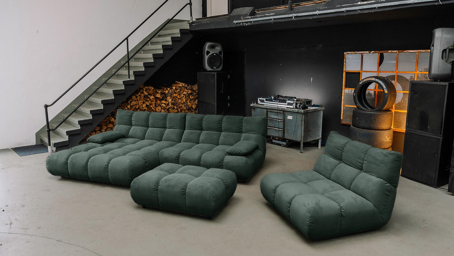 • FLEXIBEL NUTZBAR – Sofa zum Relaxen, Hocker als Ablage oder Sitzplatz, Drehsessel mit 360°-Funktion