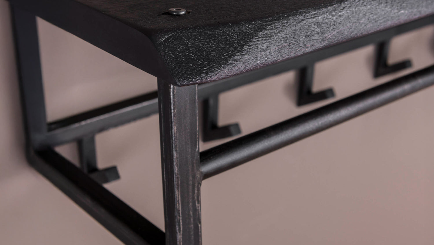 Die Wandgarderobe ADORA von KAWOLA kombiniert rustikale Eleganz mit moderner Funktionalität. Die Hutablage aus massivem Akazienholz besticht durch ihre feine Maserung und das traditionelle schwarze Finish, die ihr ein natürliches und einzigartiges Aussehen verleihen. Eine robuste, geschliffene Metallstange sowie 6 stabile Haken ermöglichen das Aufhängen von Mänteln, Jacken oder Taschen – direkt am Haken oder auf einem Bügel. Dank der zwei Befestigungsösen lässt sich die 100 cm breite, 27 cm hohe und 30 cm tiefe Garderobe einfach montieren. Ideal für Flur, Diele oder Eingangsbereich - ADORA steht für stilvolle Ordnung mit natürlichem Charme!